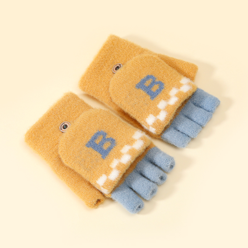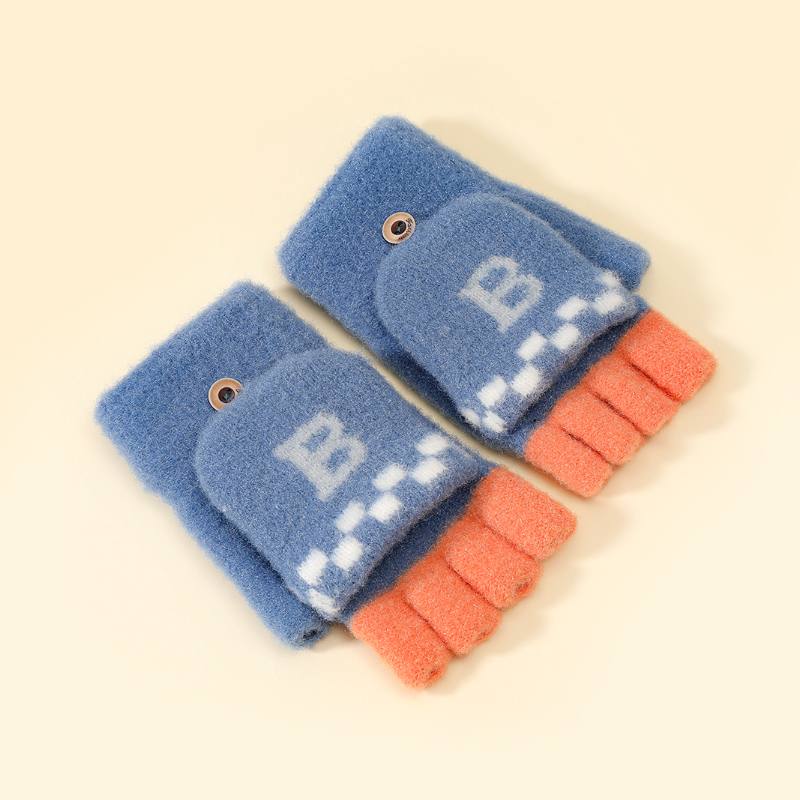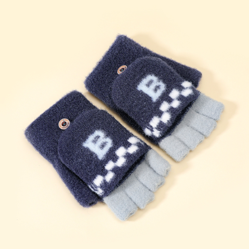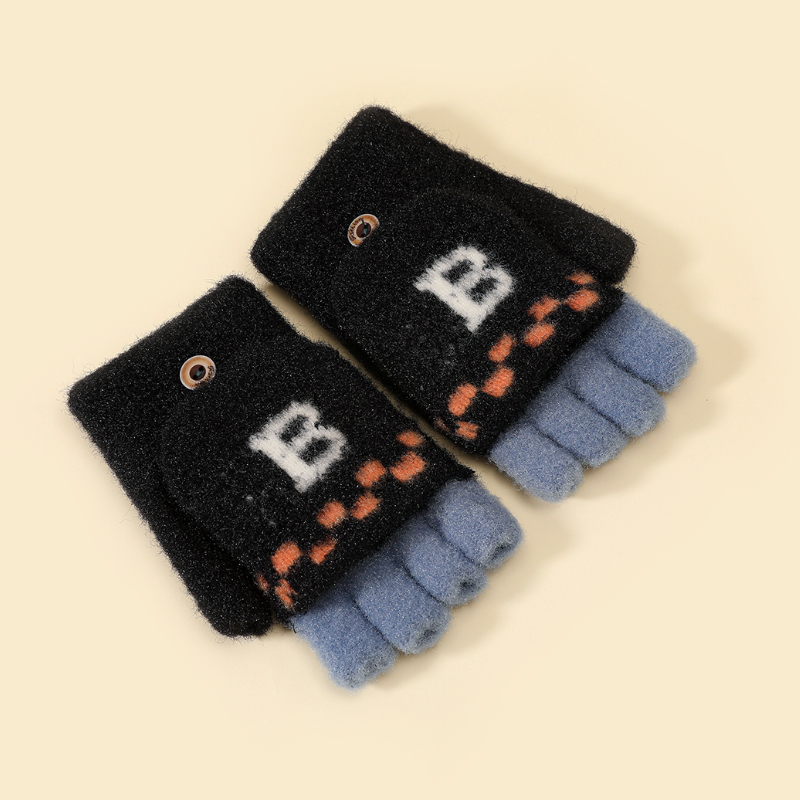 어린이 장갑 겨울 소년 하프 핑거 플립 커버 따뜻한 엑스 핑거 하프 핑거 듀얼 사용 소년 쓰기 어린이 학생스토어 가기