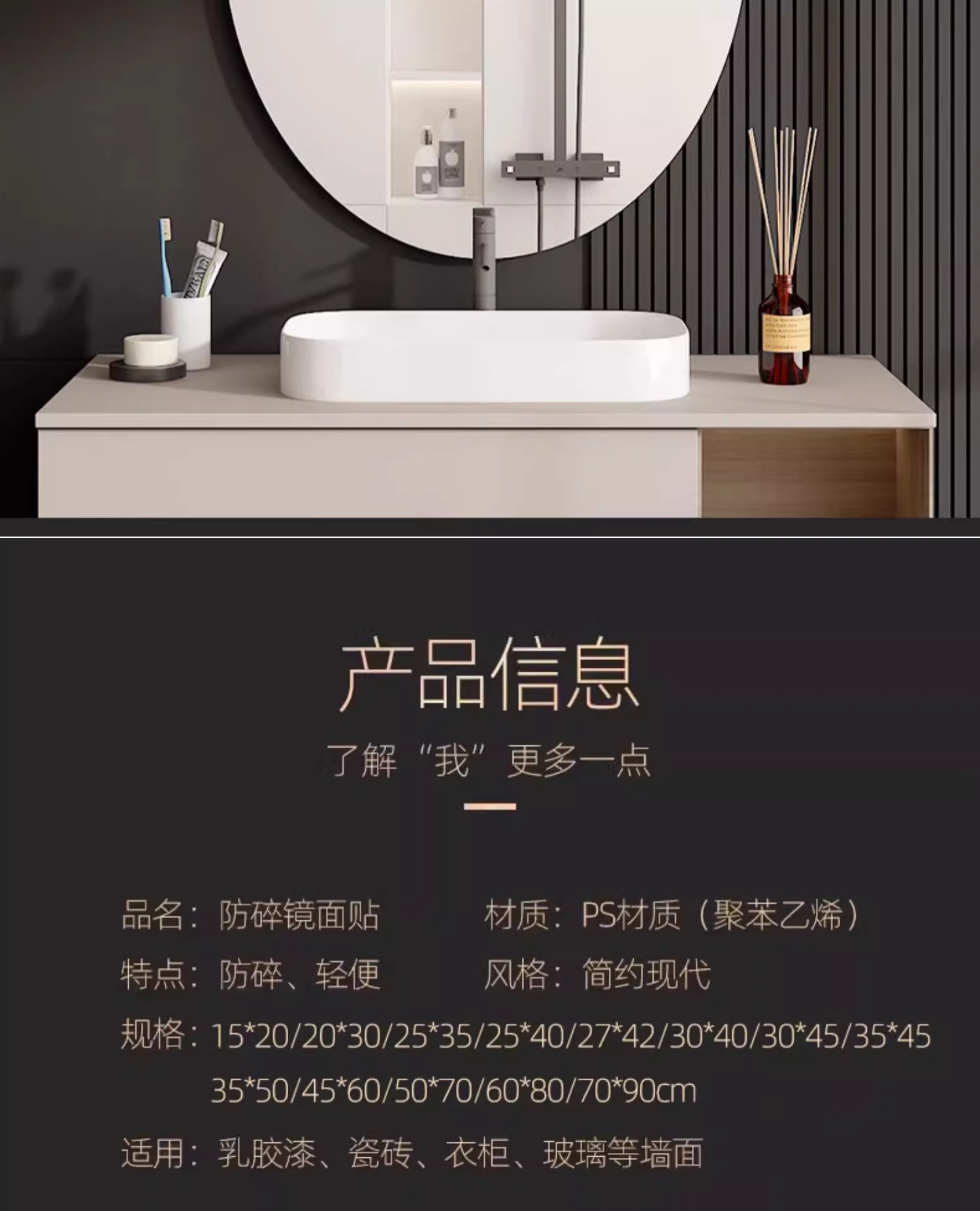 아크릴 하프 미러 타원형 욕실 거울 욕실 비 천공 벽 자체 접착 부드러운 거울 메이크업 미러 HD스토어 가기