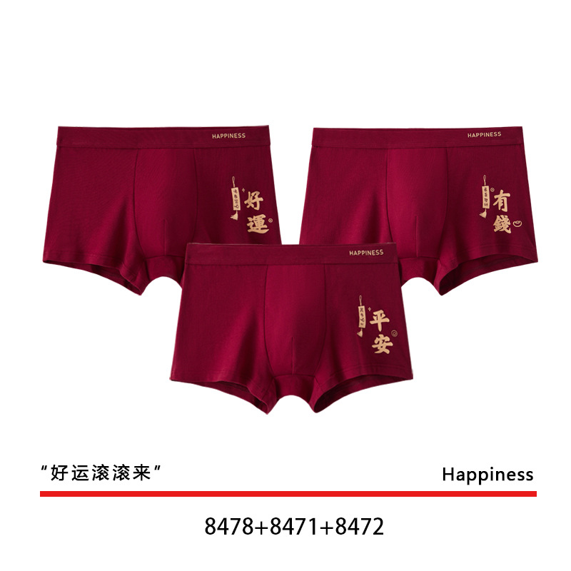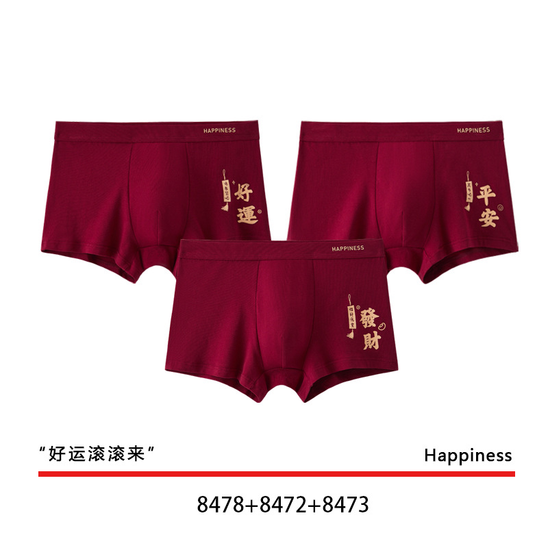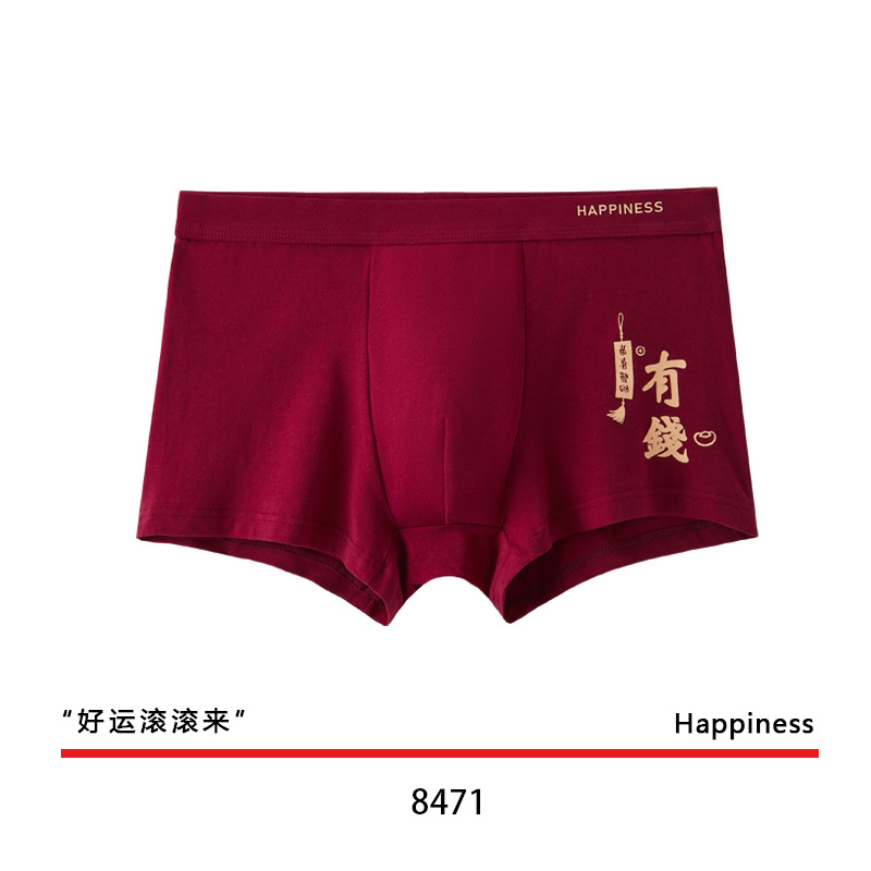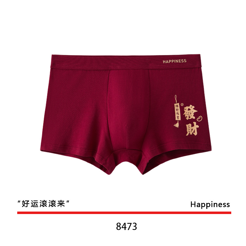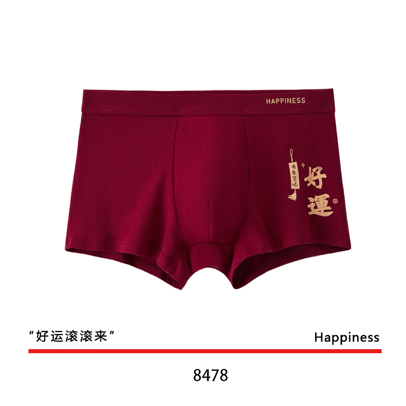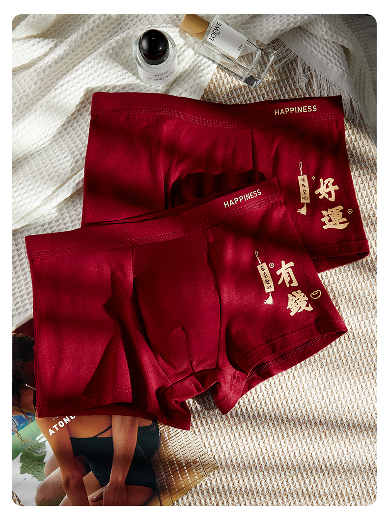 결혼 한 면화 남성 속옷을 입기 위해 행운을 빕니다. 내 붉은 출생 연도의 평평한 각도 성격 조수 통기성 편안한 네 모서리 도매스토어 가기