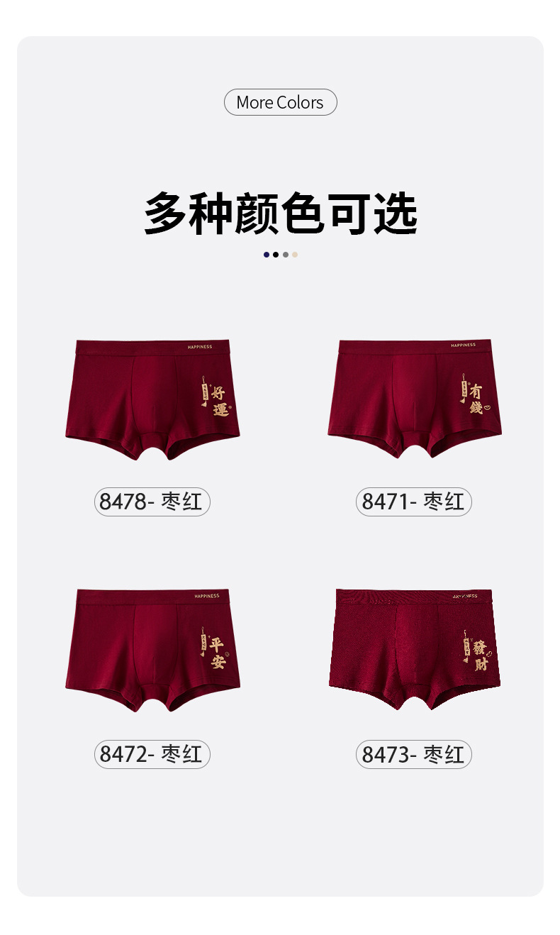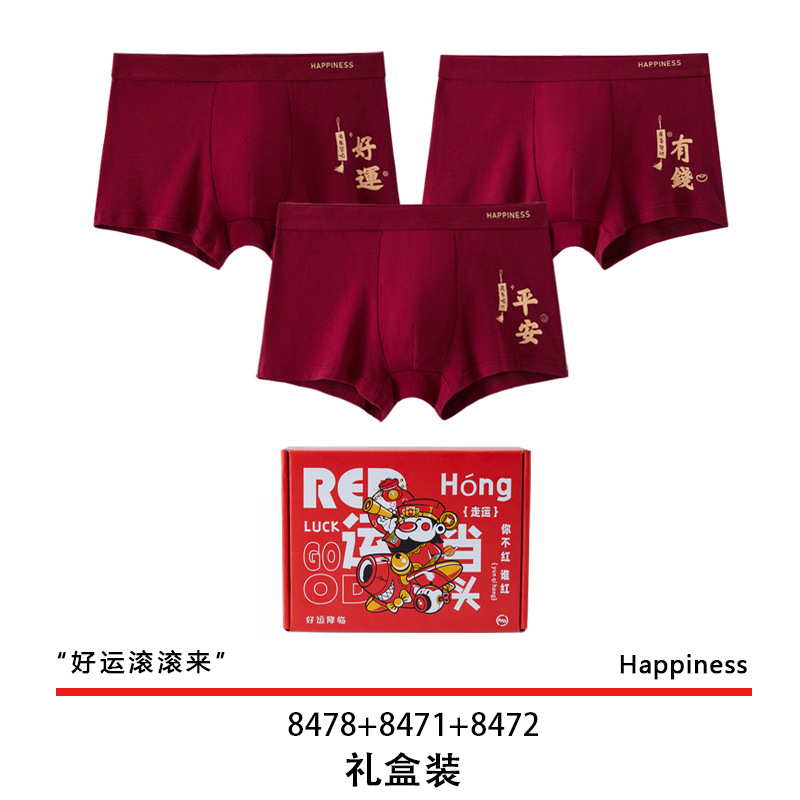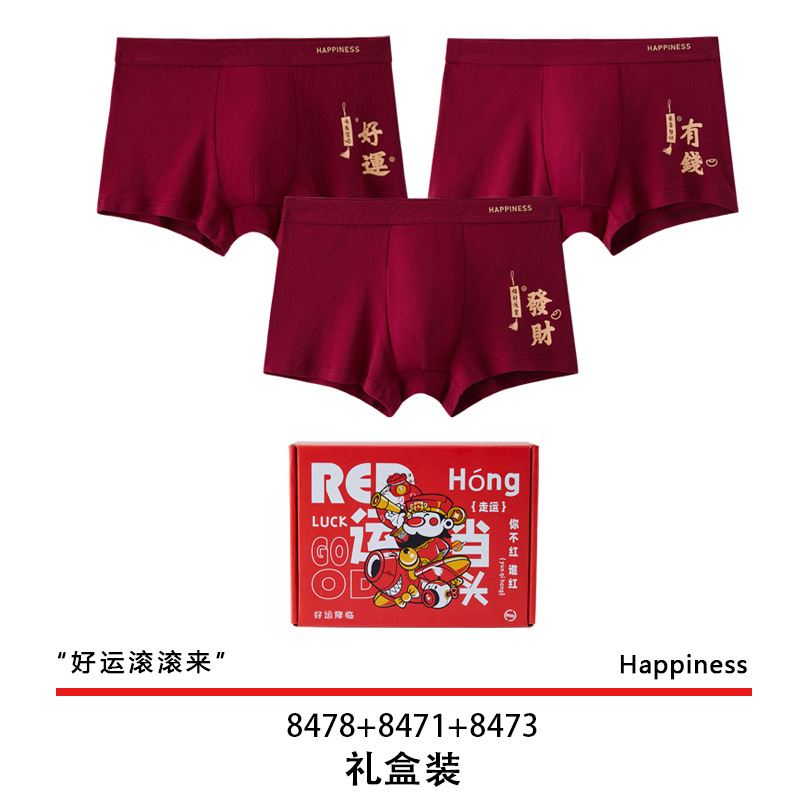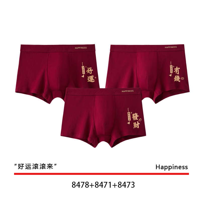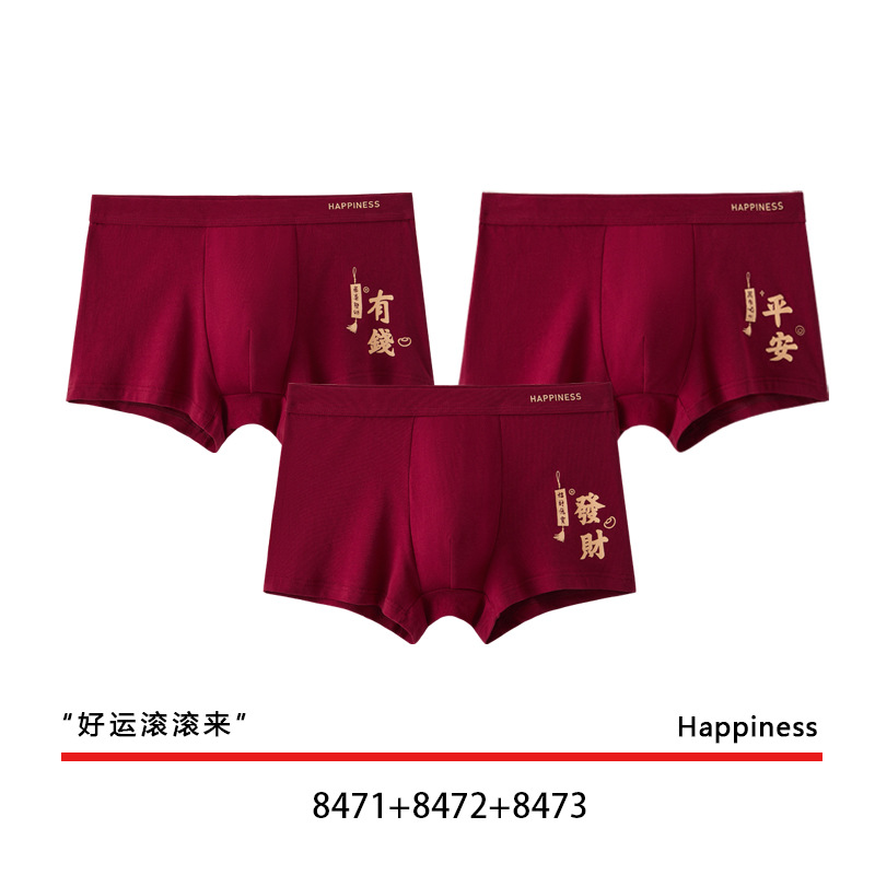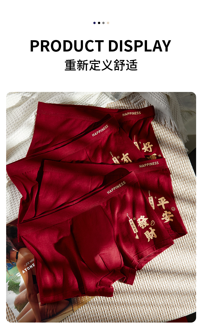 결혼 한 면화 남성 속옷을 입기 위해 행운을 빕니다. 내 붉은 출생 연도의 평평한 각도 성격 조수 통기성 편안한 네 모서리 도매스토어 가기