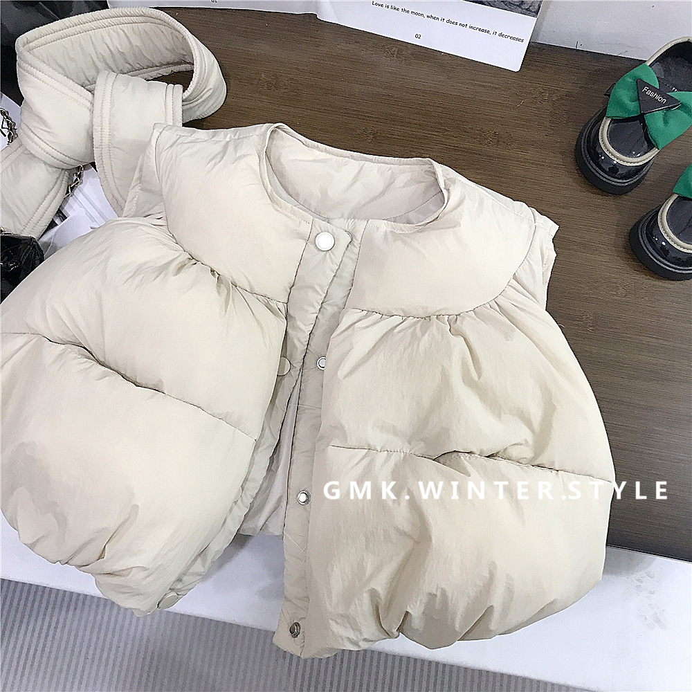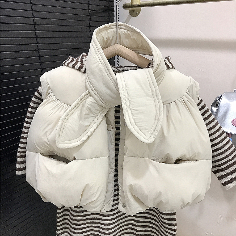 소녀 한국 스타일 퀼트 조끼 재킷 느슨한 랜턴 조끼 빵 옷 어린이 스카프 민소매 면화 원피스스토어 가기