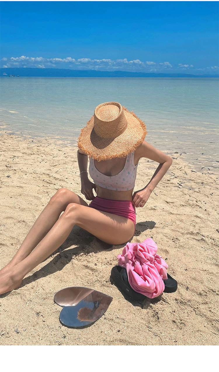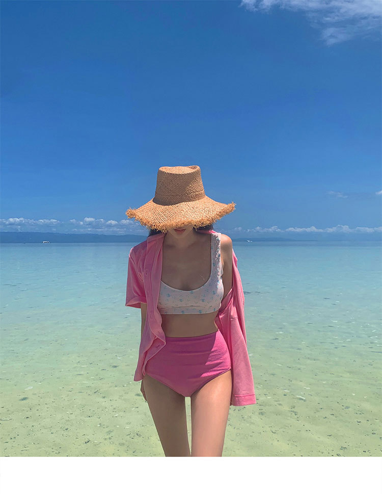한국식 2025 년 새 높은 허리 슬리밍 작은 가슴, 해변 휴가를위한 달콤한 꽃 대비 분할 수영복스토어 가기