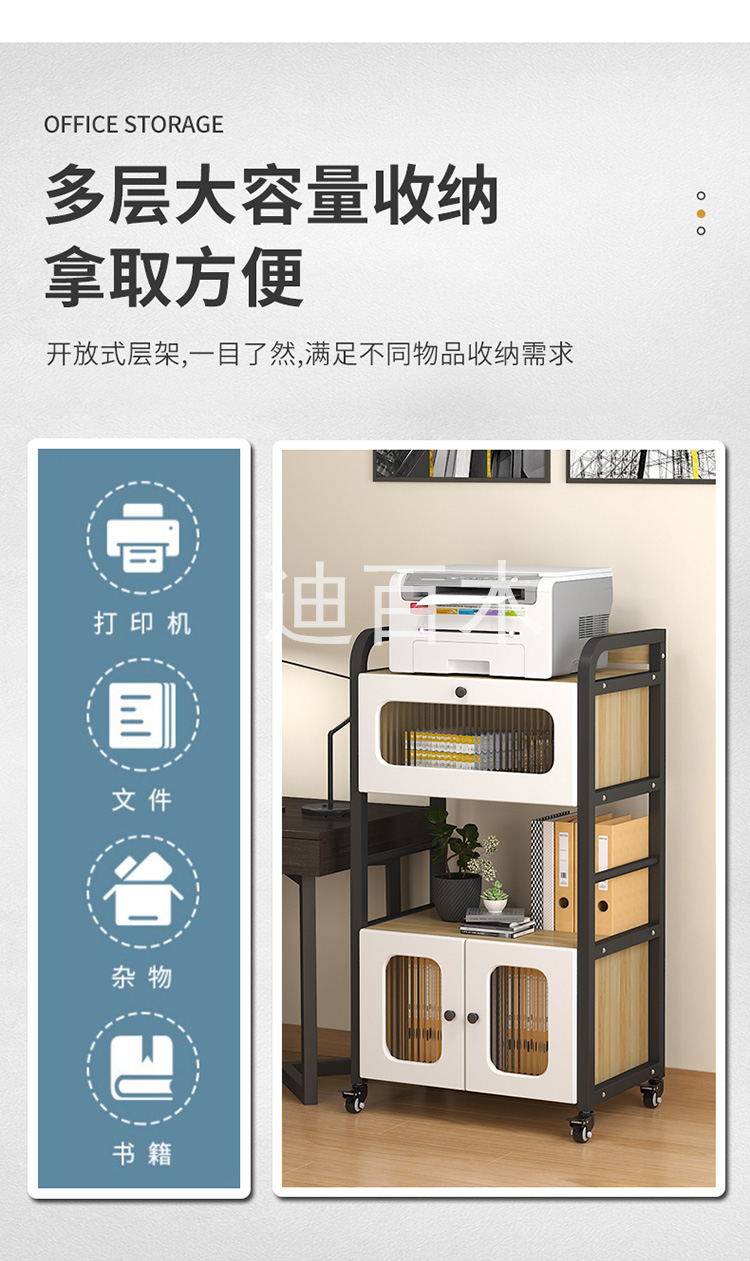 현대 간단한 프린터 스토리지 랙 가정용 사무실 데스크 사이드 플로어 다층 스토리지 랙 캐비닛 도어