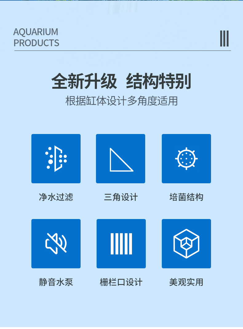 수족관 세계 물고기 탱크 내장 삼각형 사일런트 필터 강한 흡입 살균 산소 순환 물 시스템 다이빙 장비스토어 가기