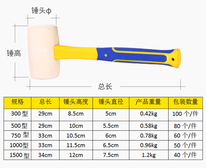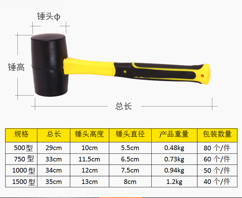 고무 망치 미국 섬유 손잡이 고무 망치 고무 망치 부드러운 고무 힘줄 플라스틱 망치 타일 장식 설치 도자기스토어 가기