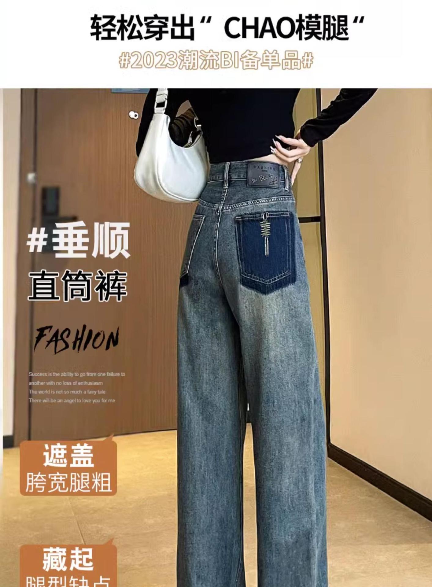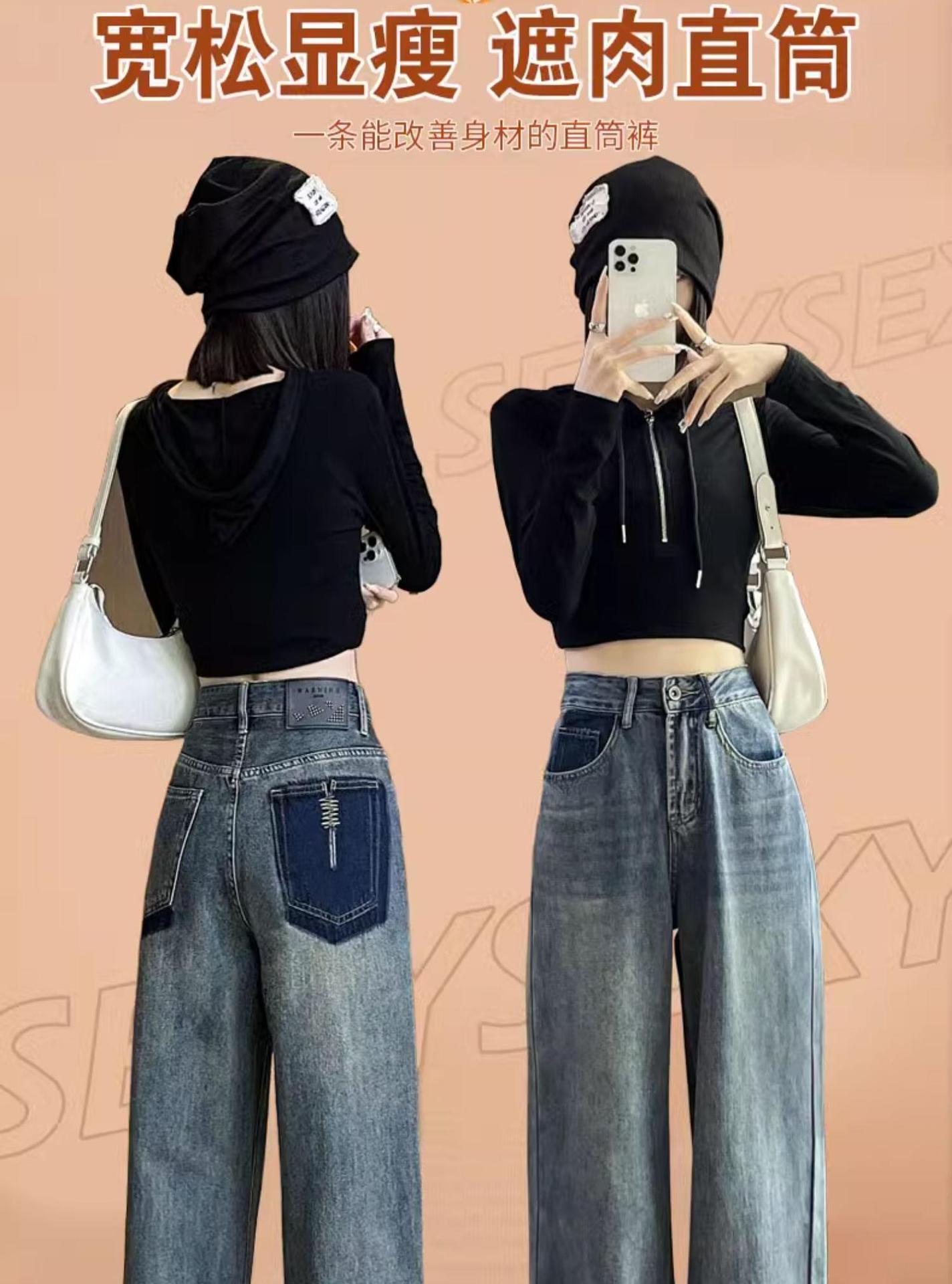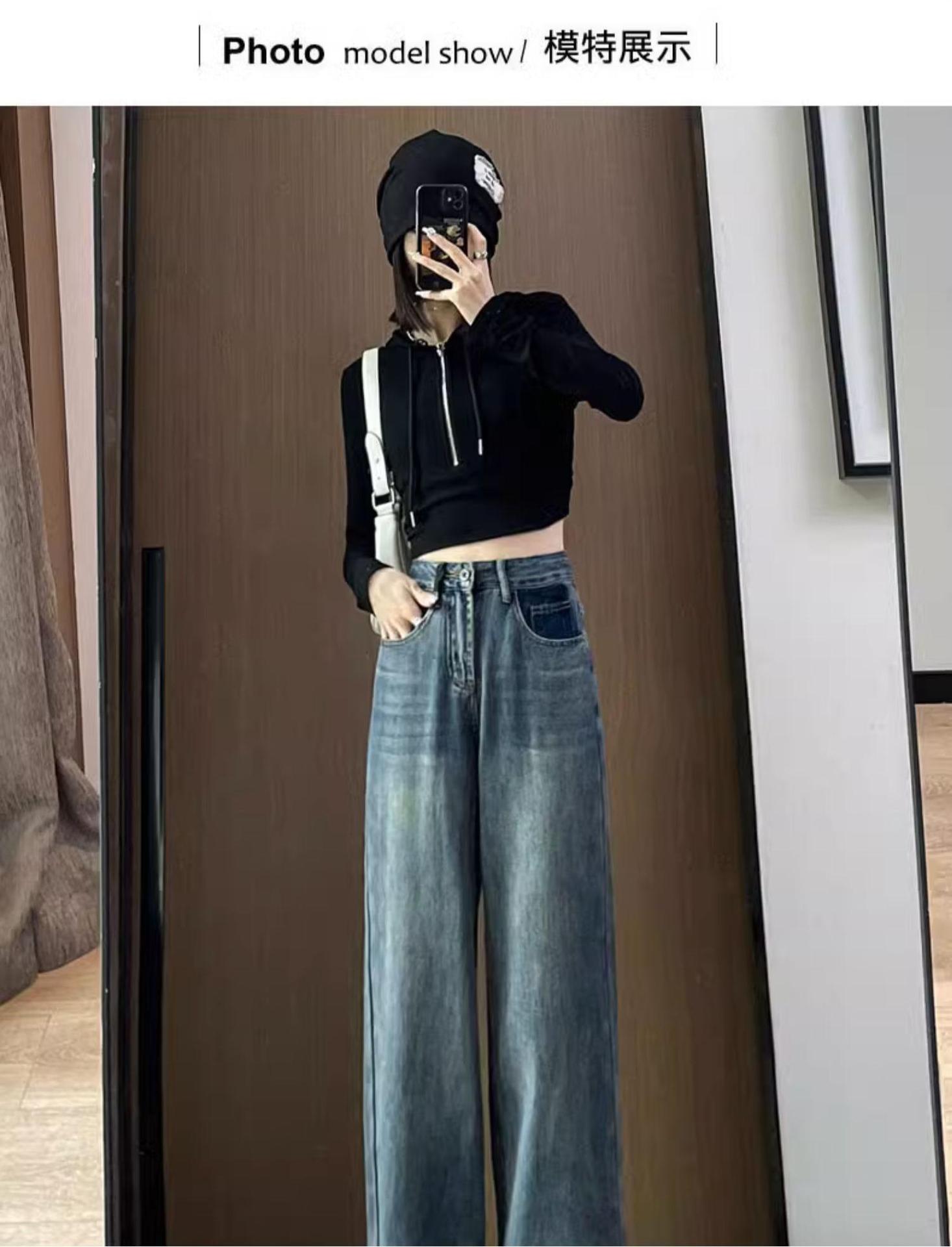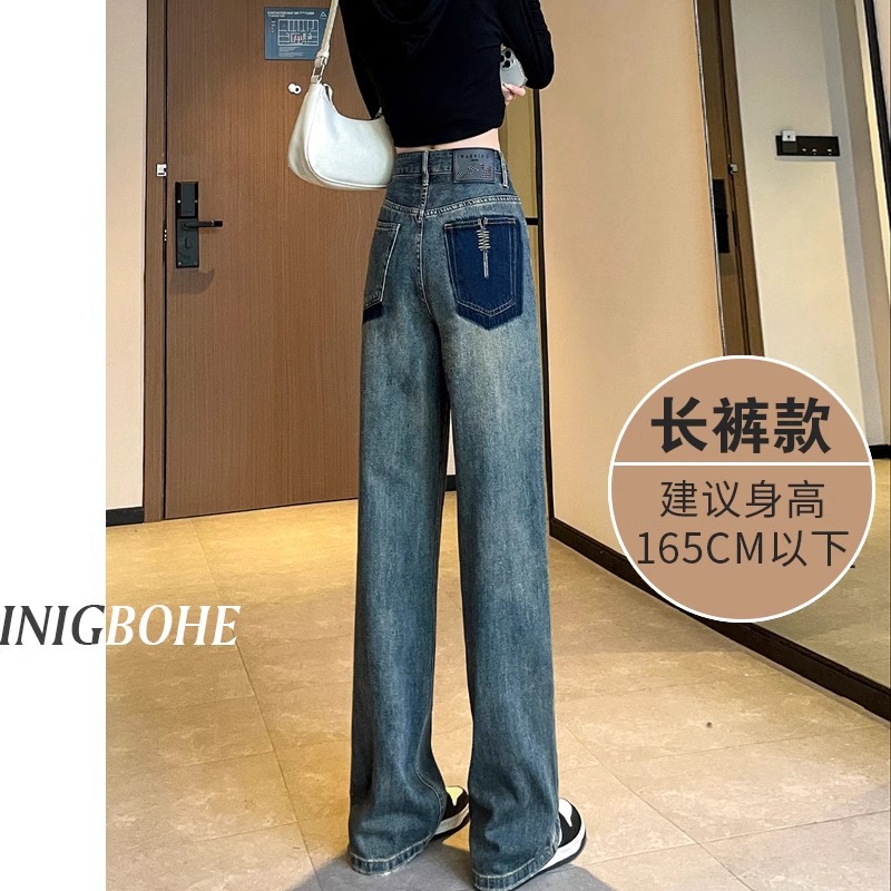 스트레이트 레그 청바지 여성의 봄과 가을 2024 새로운 느슨한 높은 허리 슬리밍 레트로 트레일 넓은 다리 바지 여성의 가을스토어 가기