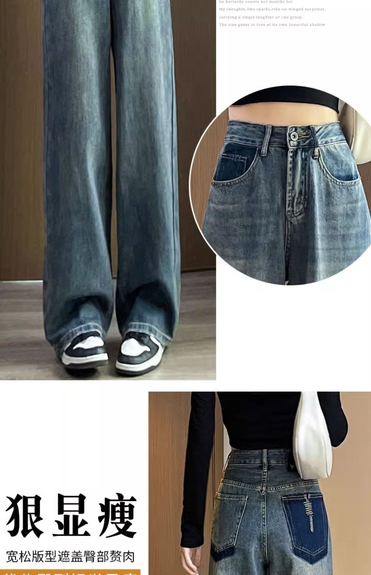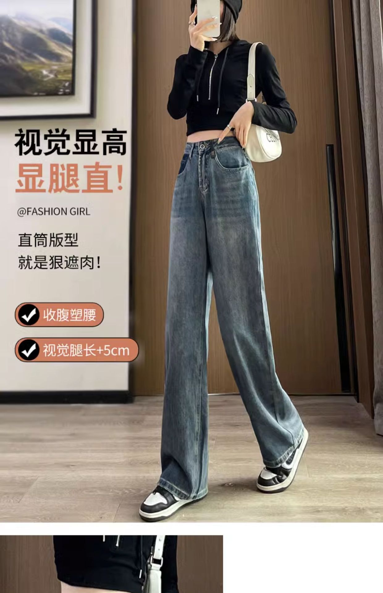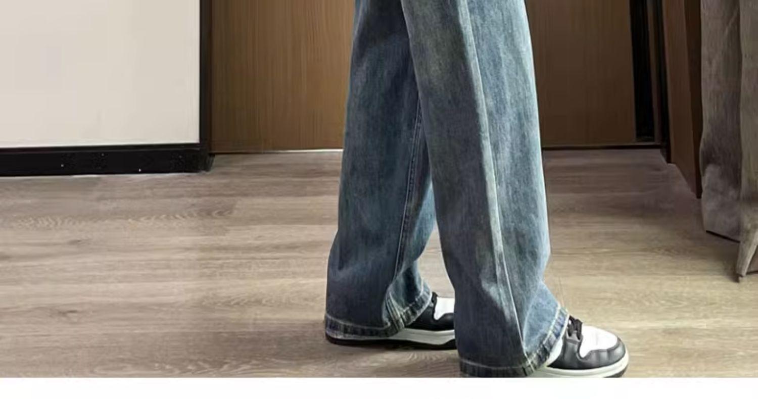 스트레이트 레그 청바지 여성의 봄과 가을 2024 새로운 느슨한 높은 허리 슬리밍 레트로 트레일 넓은 다리 바지 여성의 가을스토어 가기
