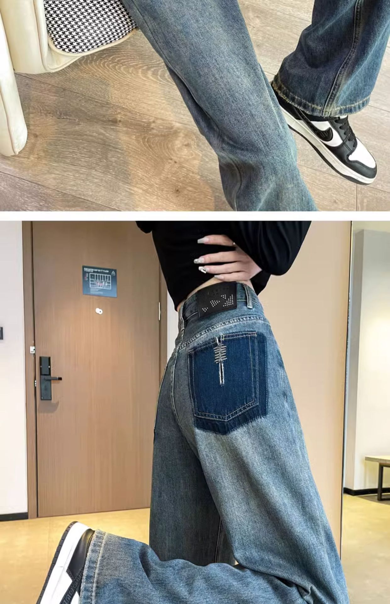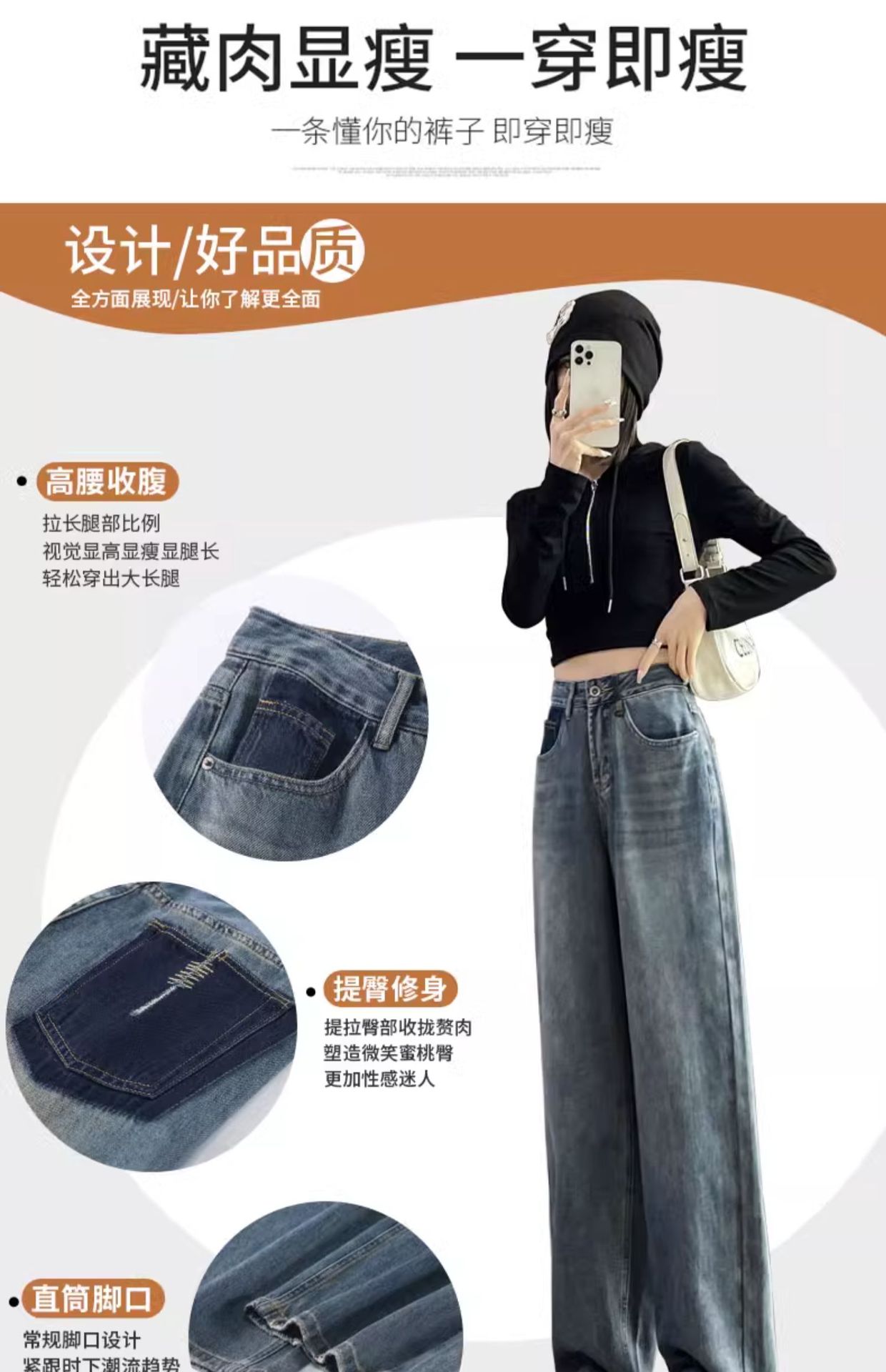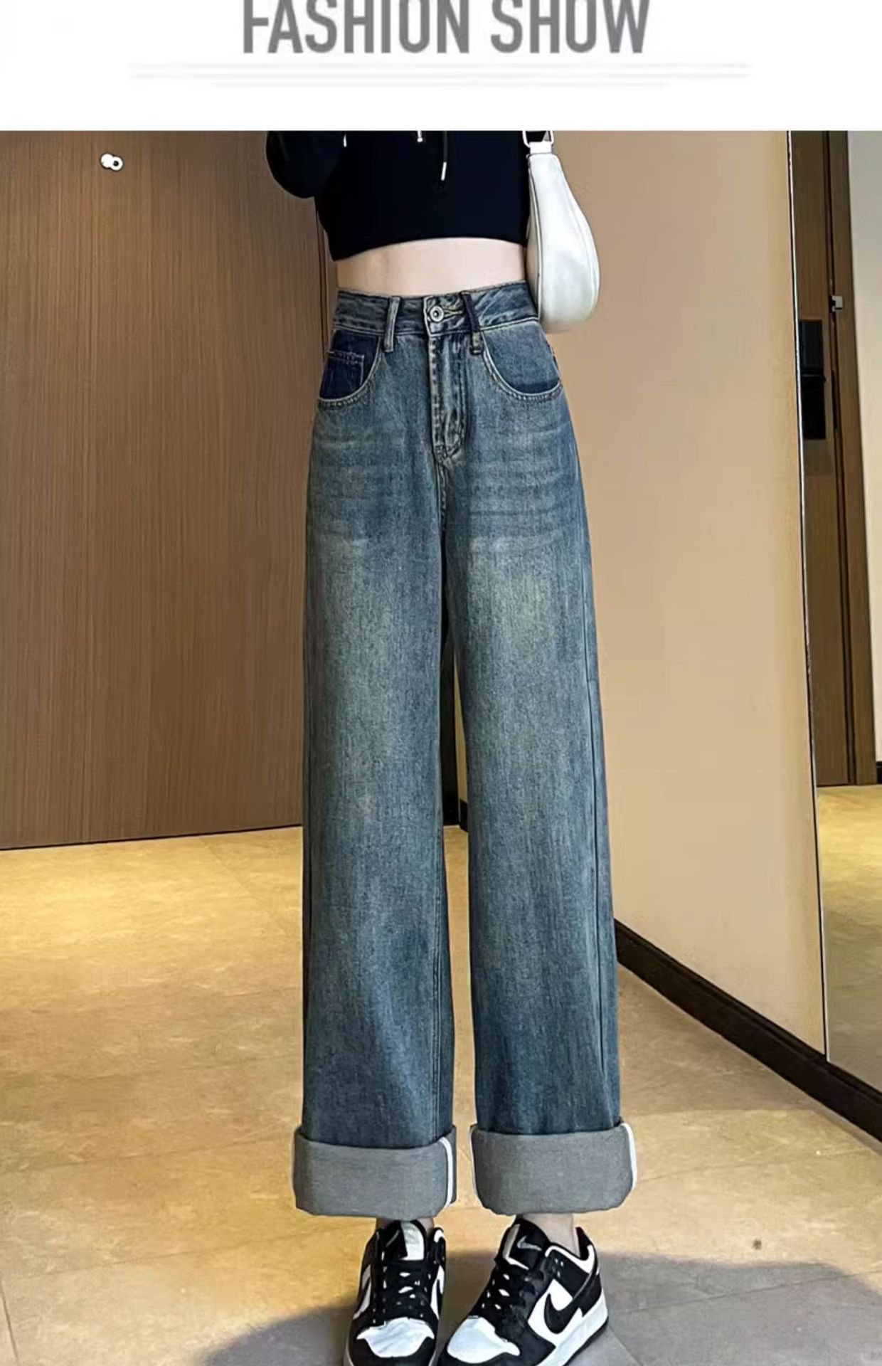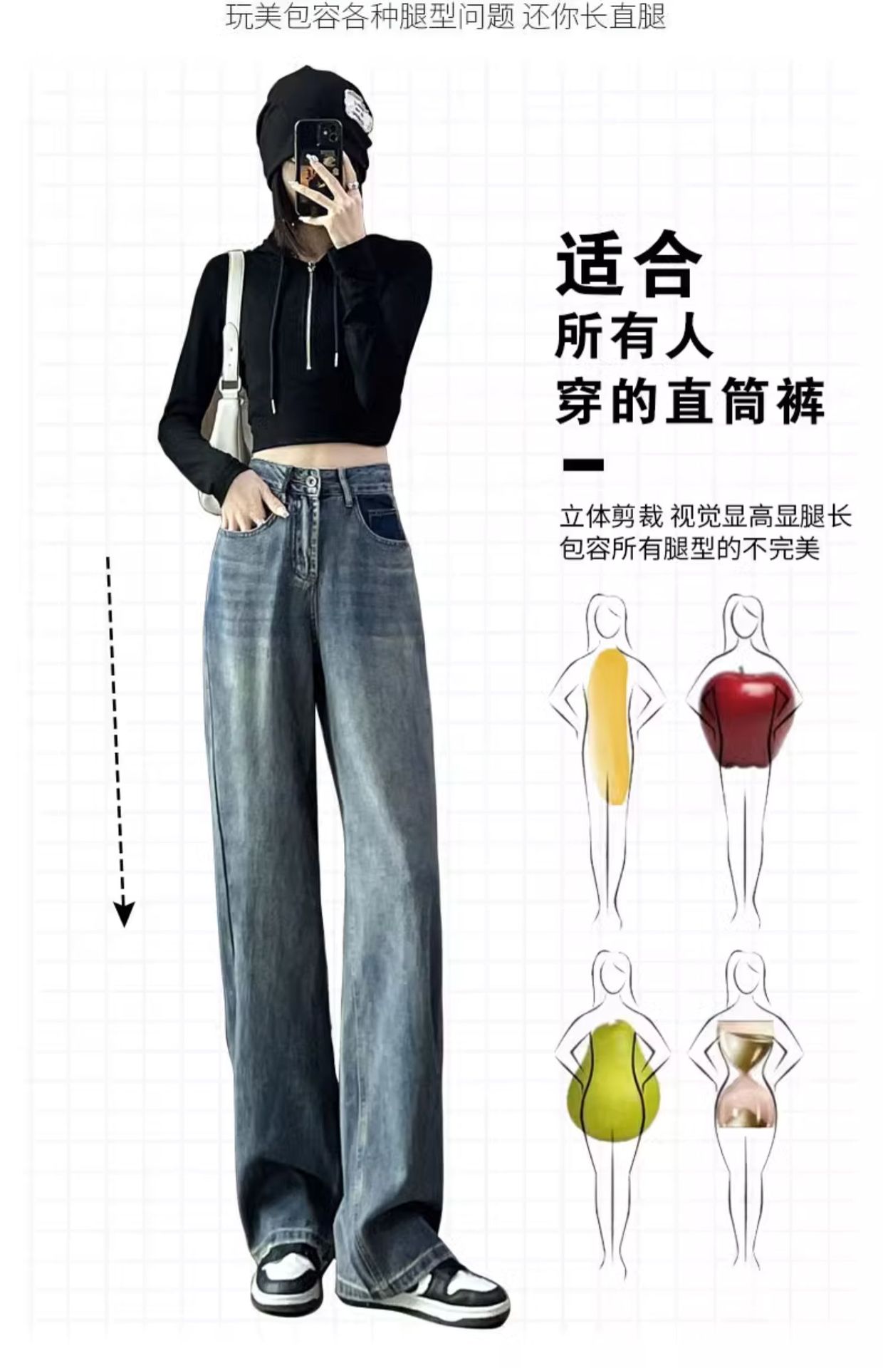 스트레이트 레그 청바지 여성의 봄과 가을 2024 새로운 느슨한 높은 허리 슬리밍 레트로 트레일 넓은 다리 바지 여성의 가을스토어 가기