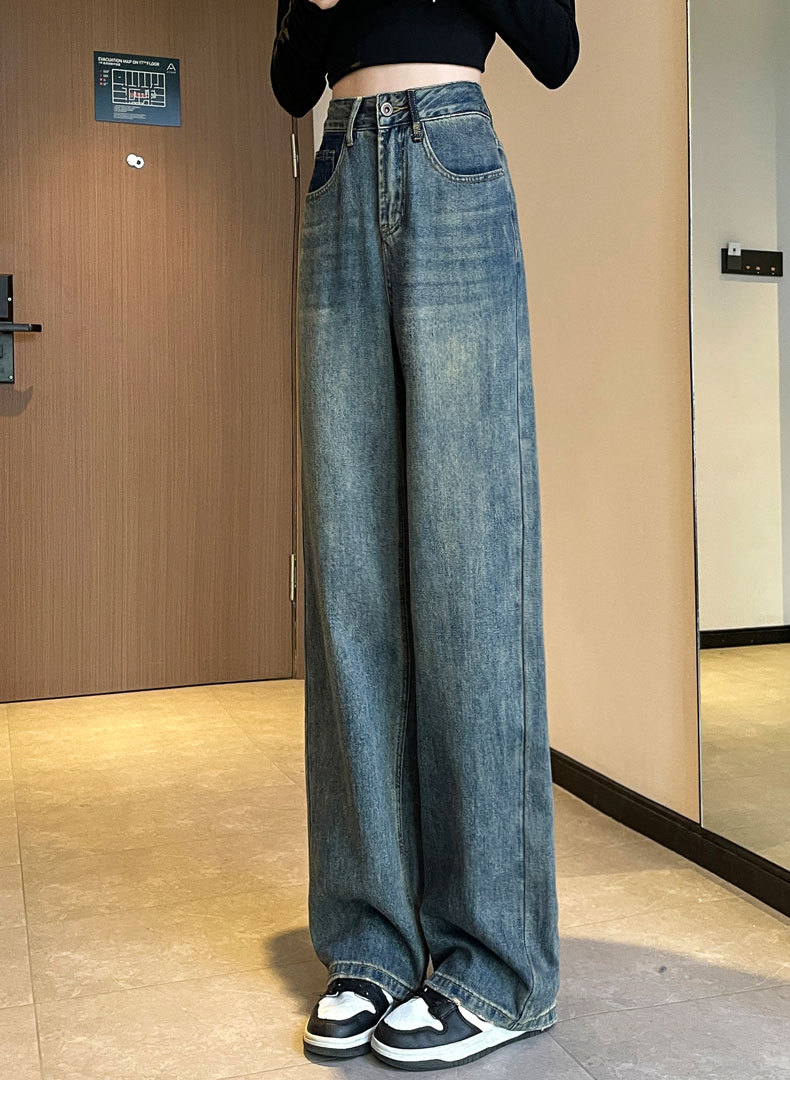 스트레이트 레그 청바지 여성의 봄과 가을 2024 새로운 느슨한 높은 허리 슬리밍 레트로 트레일 넓은 다리 바지 여성의 가을
