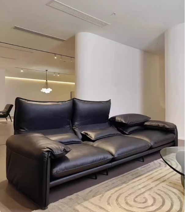 이탈리아 미니멀리스트 복고풍 가죽 소파, 높은 등받이, 접이식 소파, 가벼운 럭셔리, 고급 소파스토어 가기