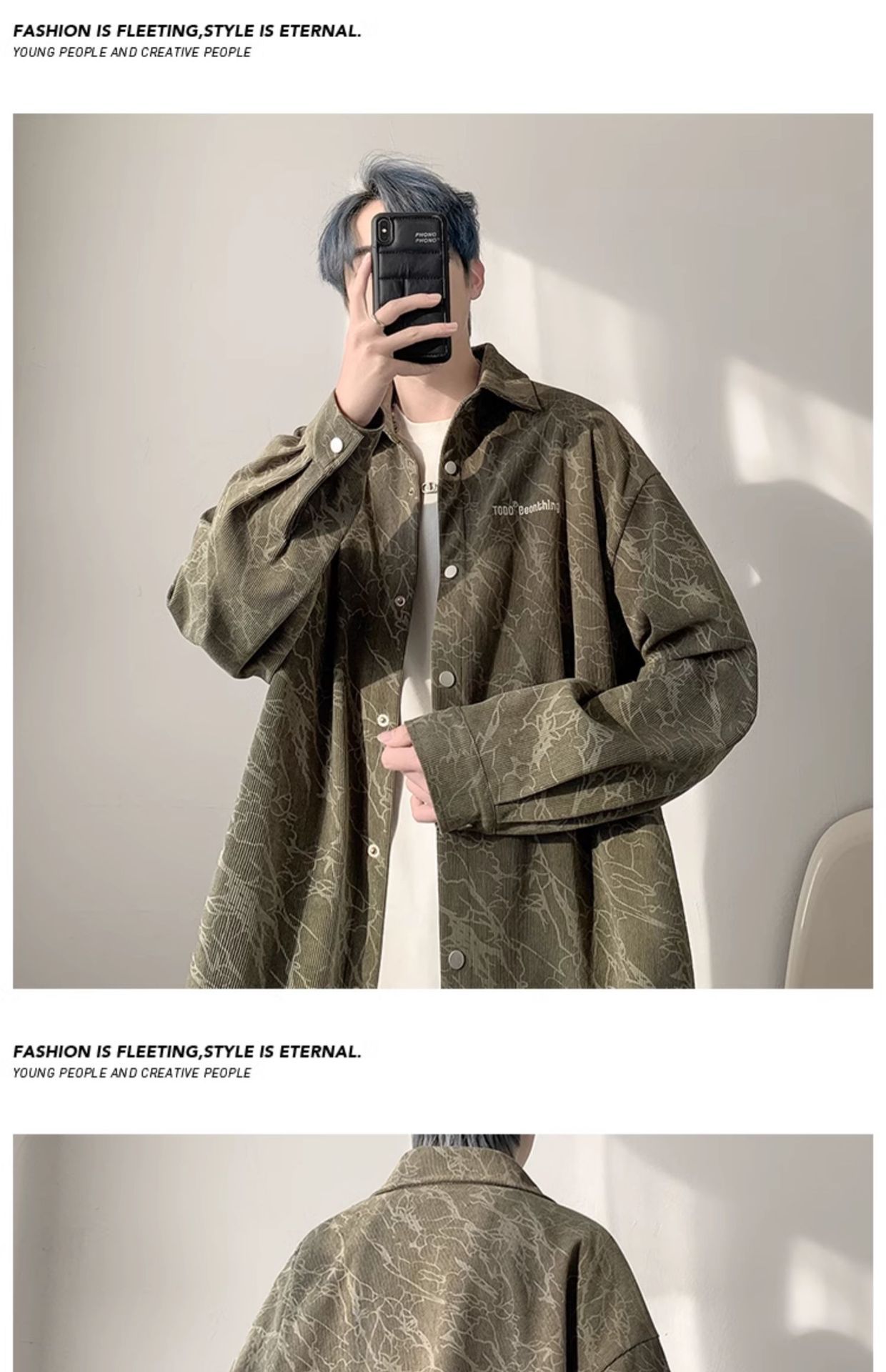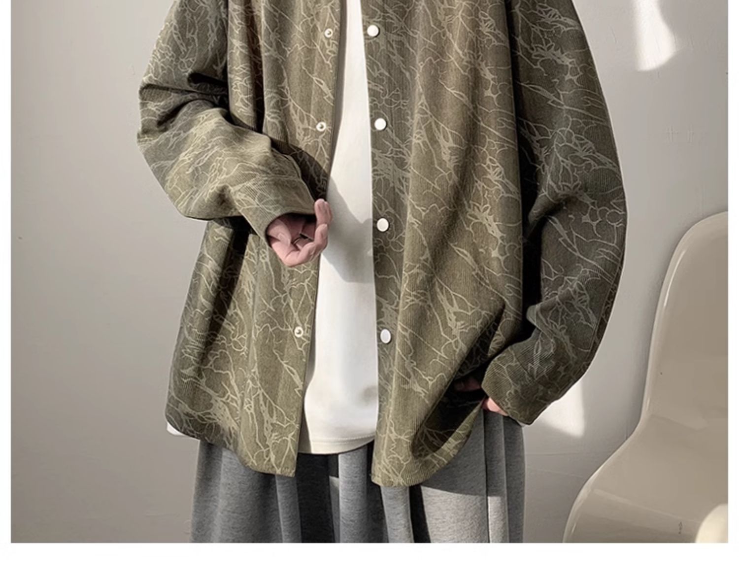 Corduroy Tie-Dye 긴팔 셔츠 남자의 가을 새로운 미국 스타일 레트로 트렌디 브랜드 수 놓은 모든 경기 캐주얼 셔츠 재킷스토어 가기