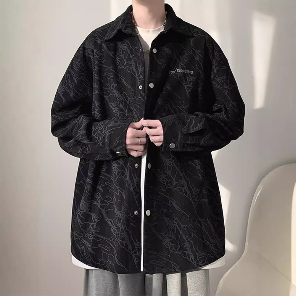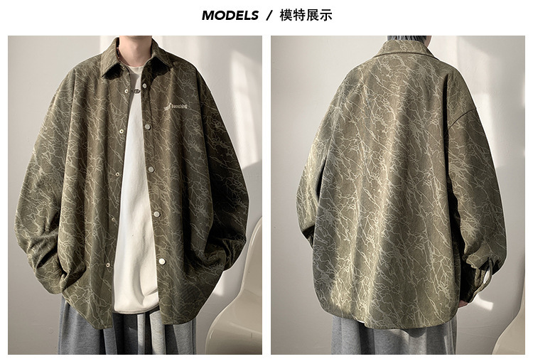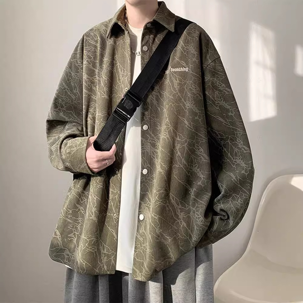 Corduroy Tie-Dye 긴팔 셔츠 남자의 가을 새로운 미국 스타일 레트로 트렌디 브랜드 수 놓은 모든 경기 캐주얼 셔츠 재킷