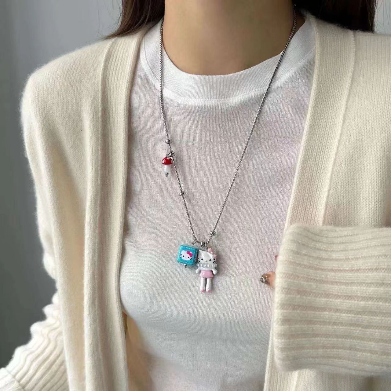 • 귀여운 만화 사각 kt 고양이 목걸이 X4977
