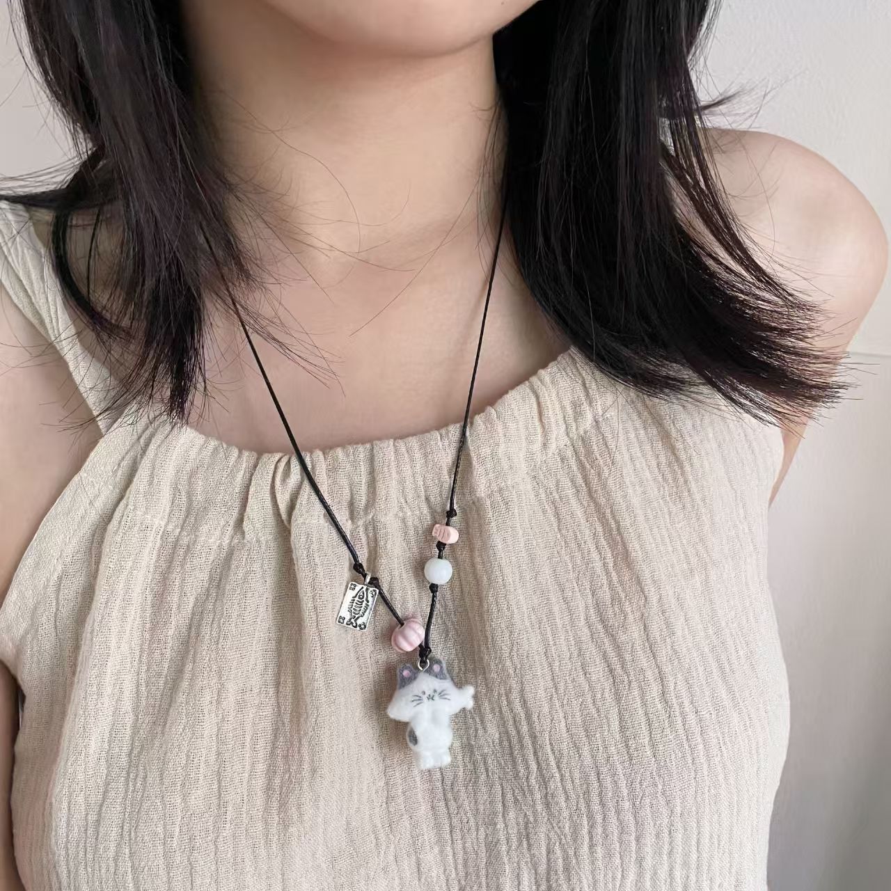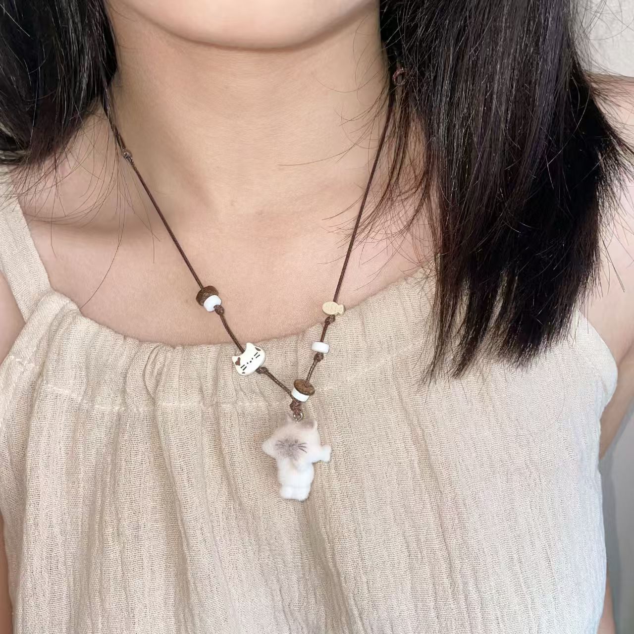 만화 귀여운 작은 동물 직물 어린이 목걸이 어린이 재미 올 매치 가을과 겨울 달콤한 체인 가죽 로프 펜던트스토어 가기