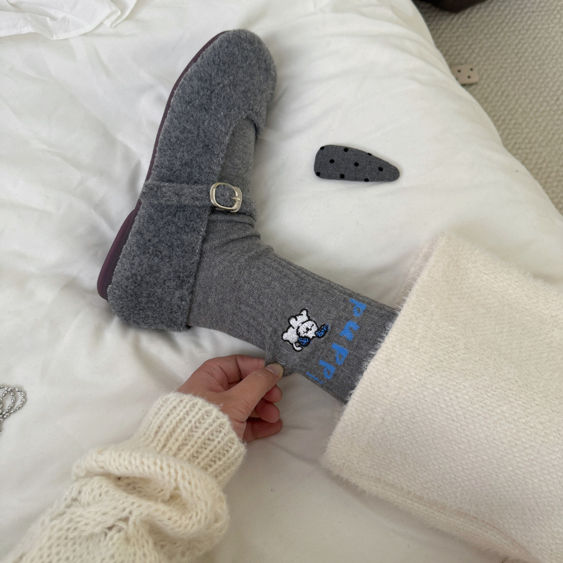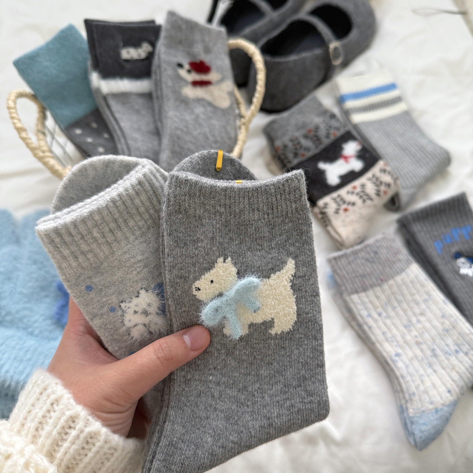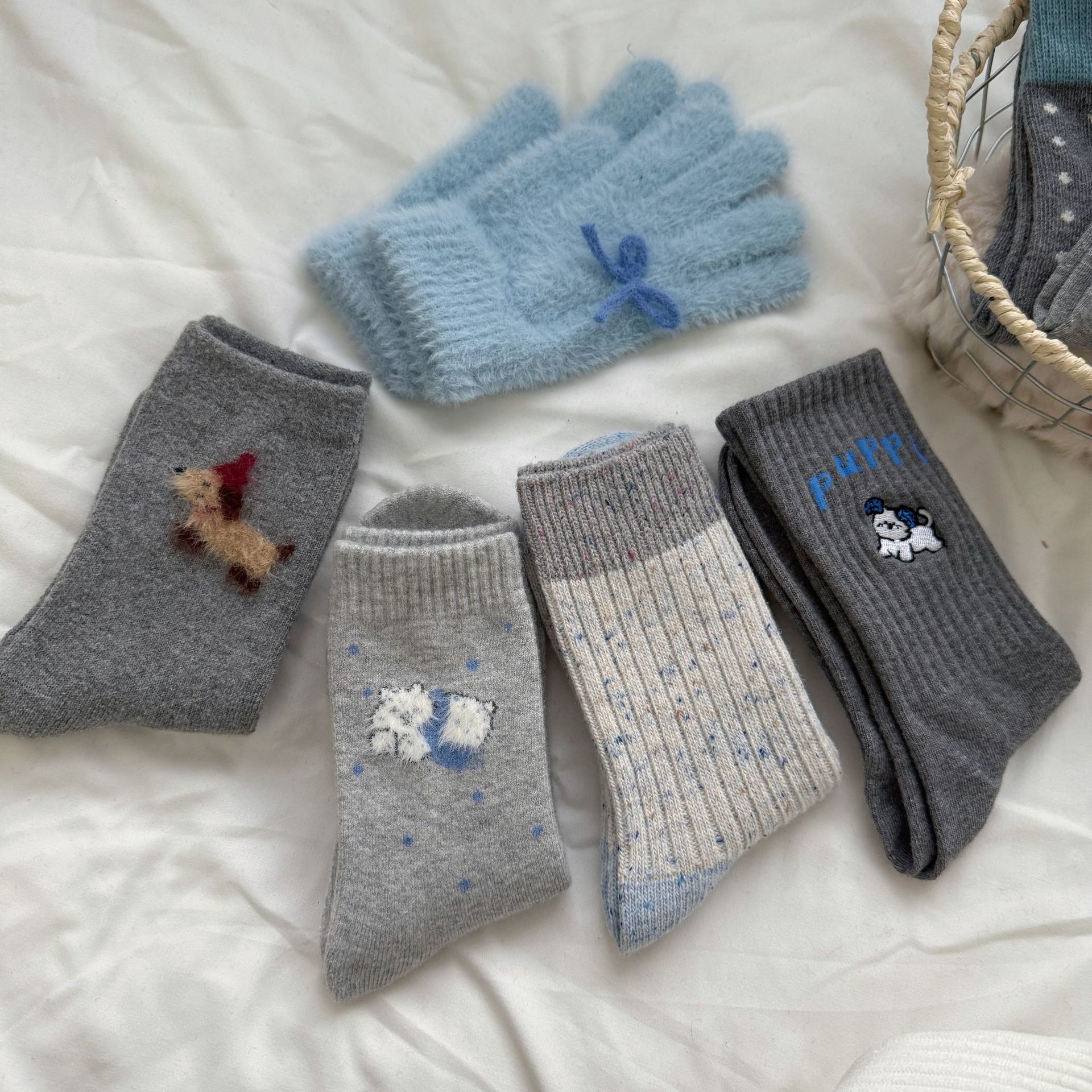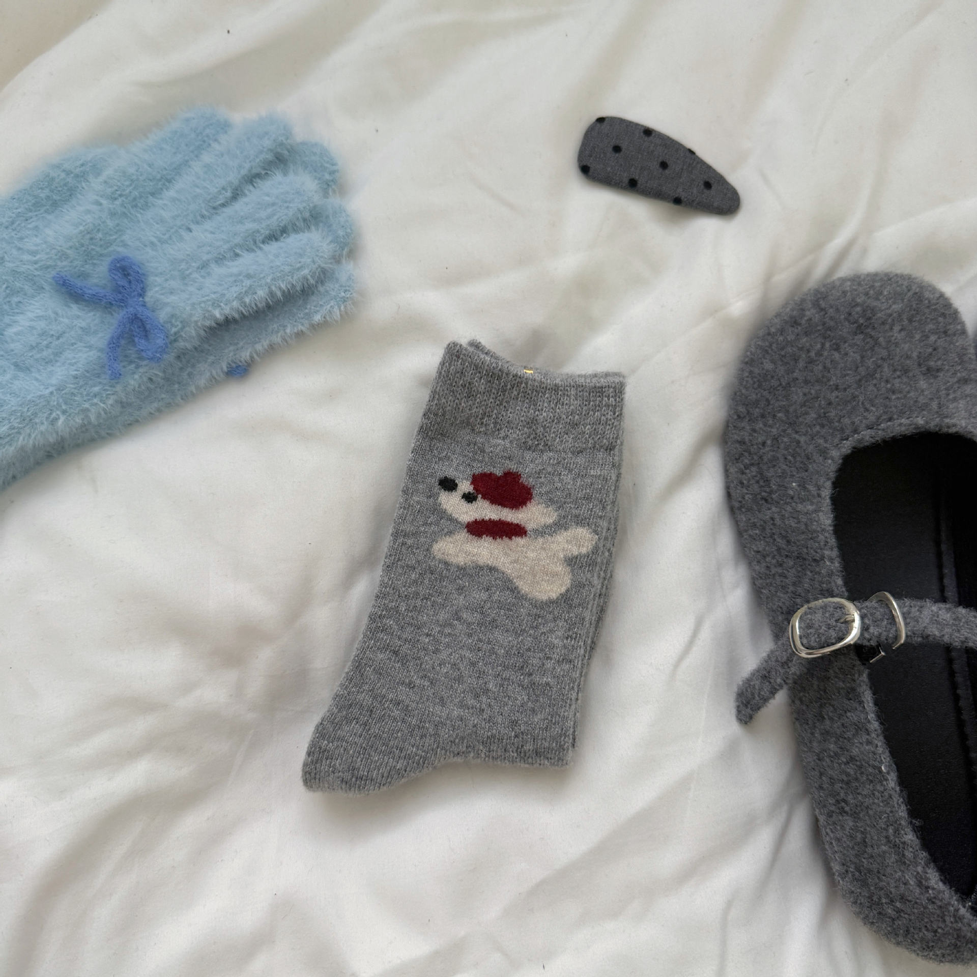작은 빨간 책 폭발 조합! Bowknot 컬러 모헤어 쥬얼리 양말 두껍게 기모 양모 양말 따뜻한 더미스토어 가기