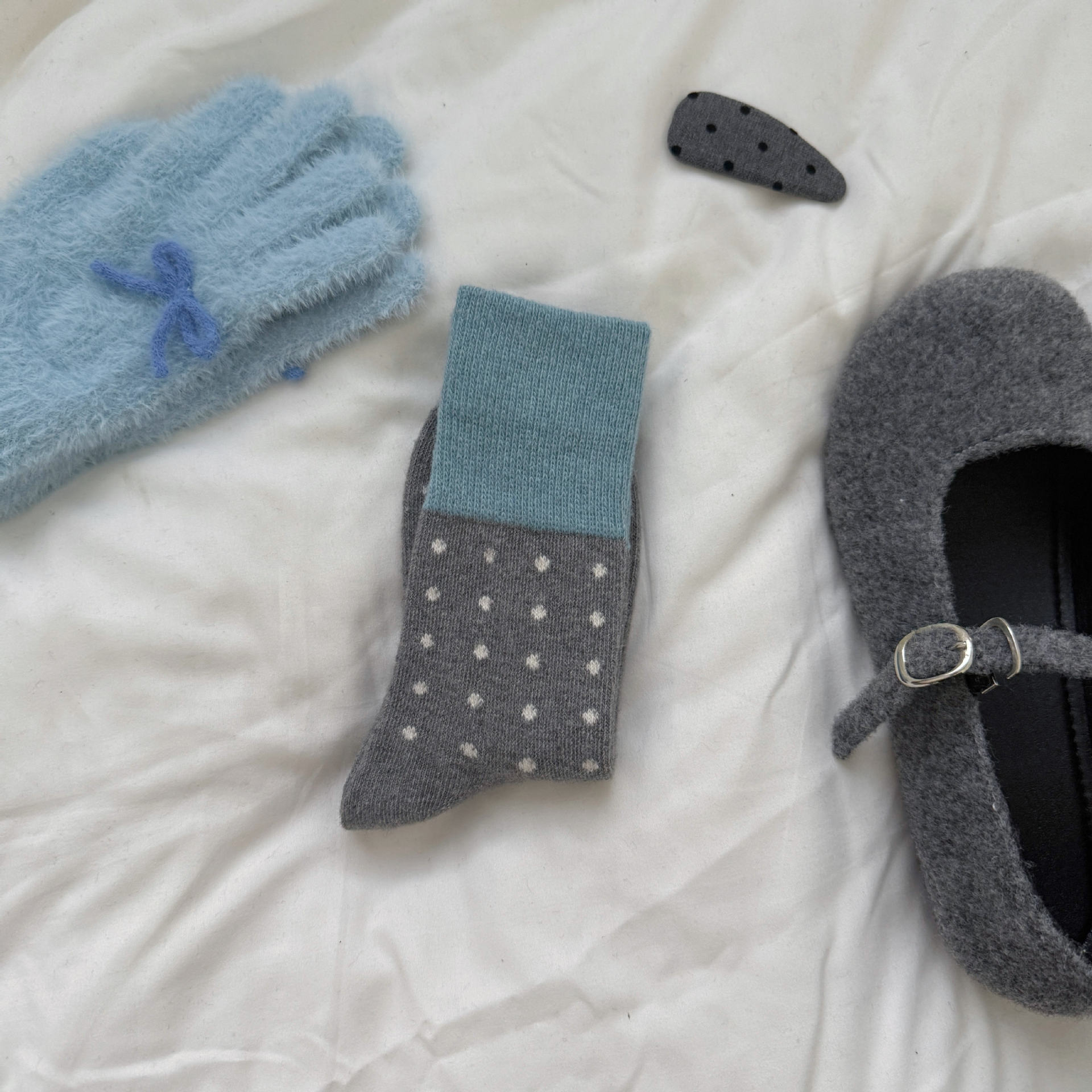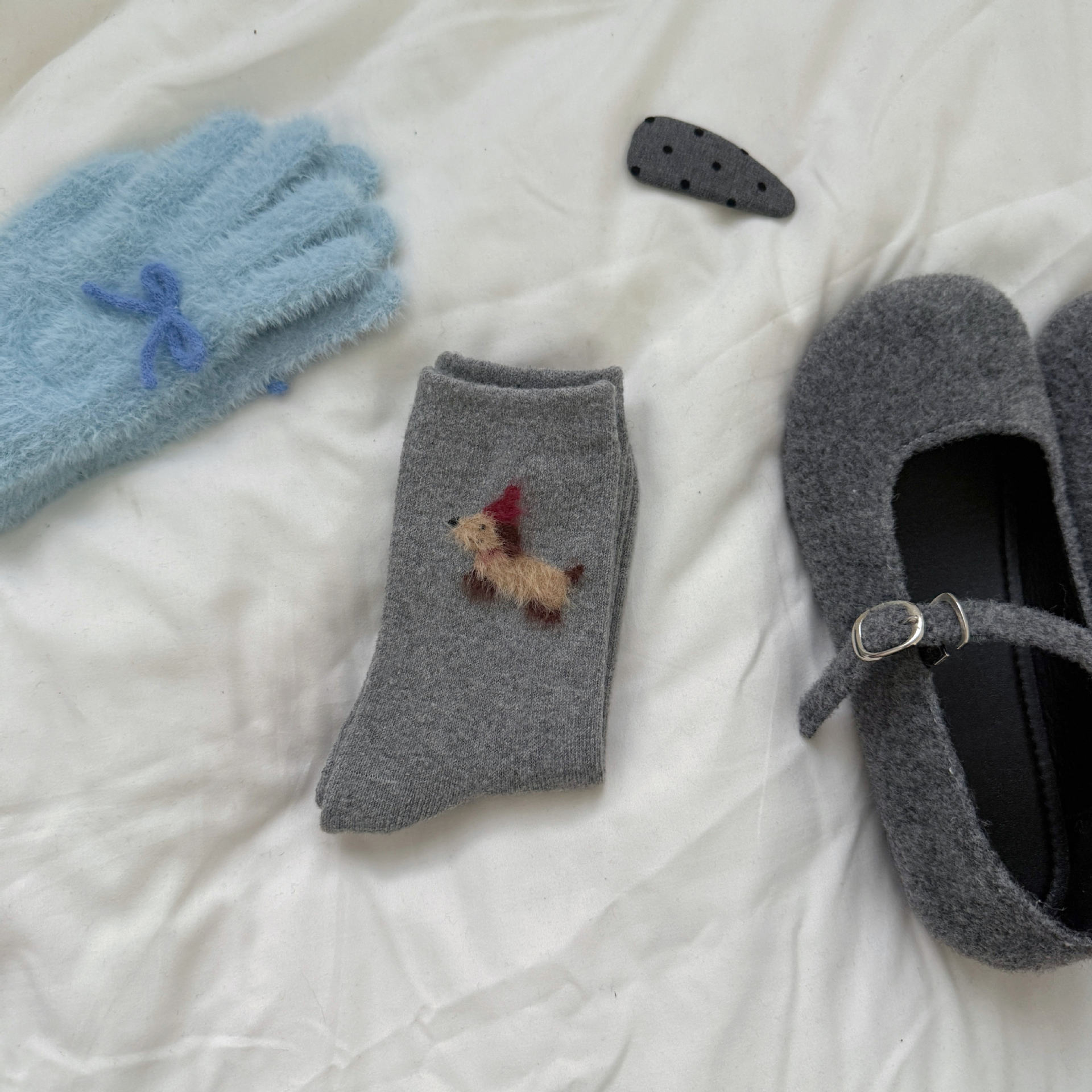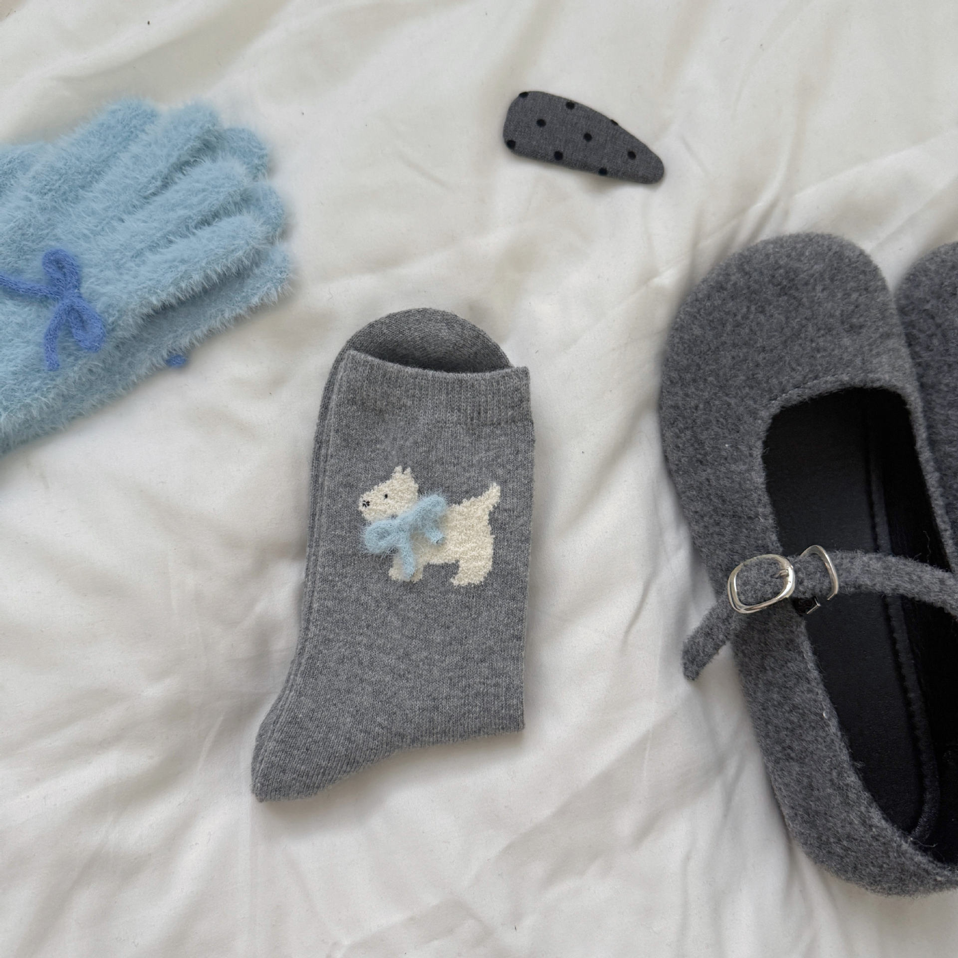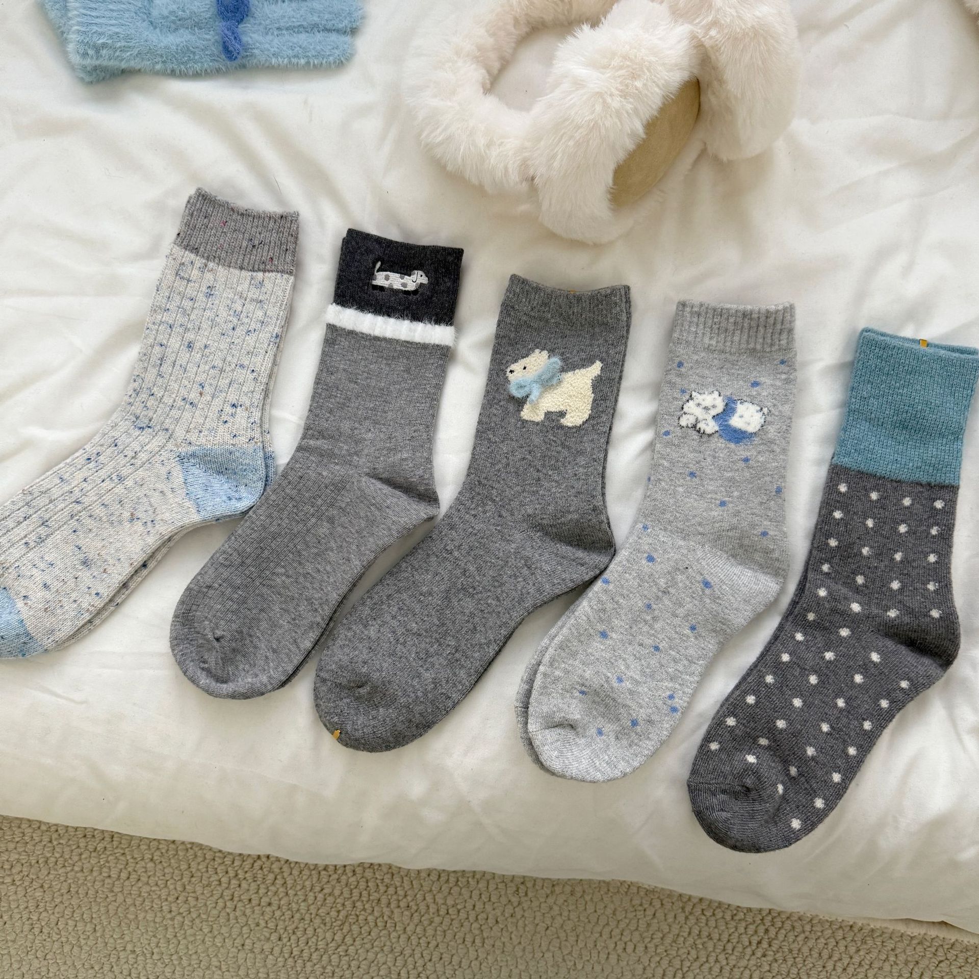 작은 빨간 책 폭발 조합! Bowknot 컬러 모헤어 쥬얼리 양말 두껍게 기모 양모 양말 따뜻한 더미스토어 가기