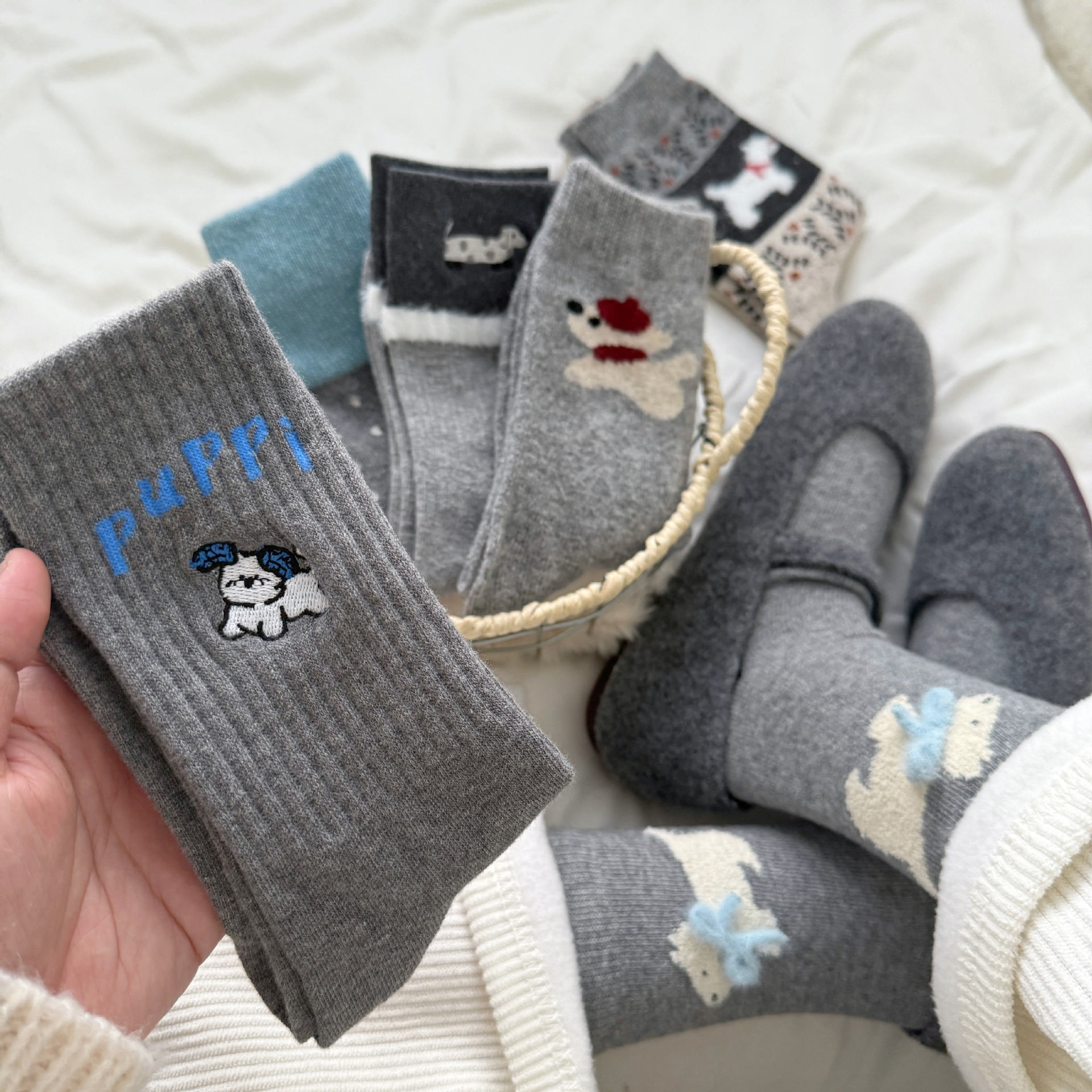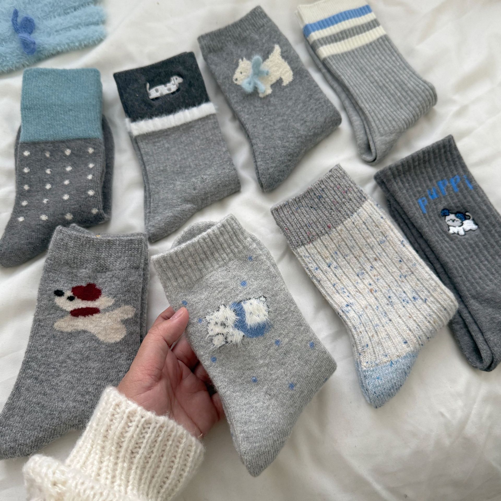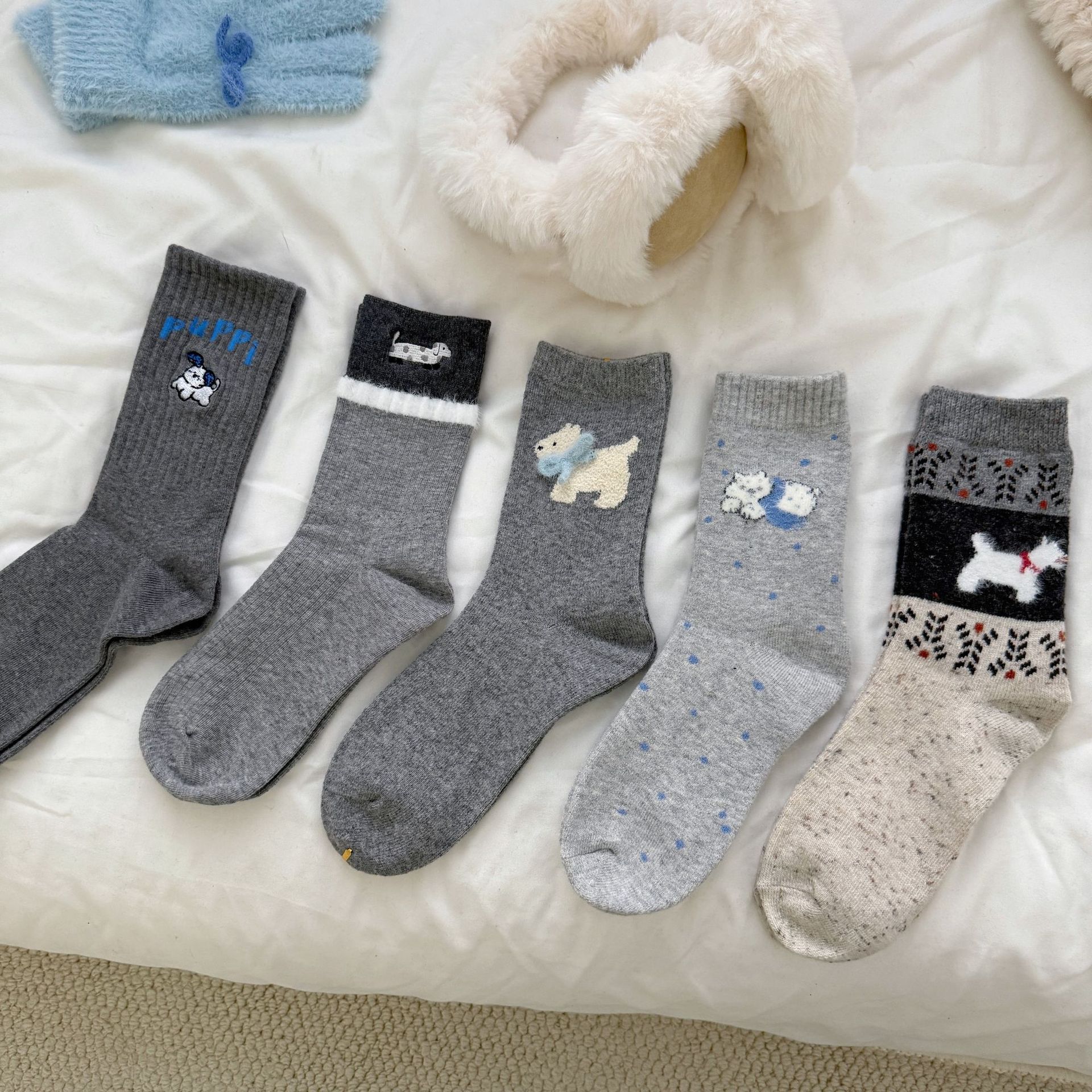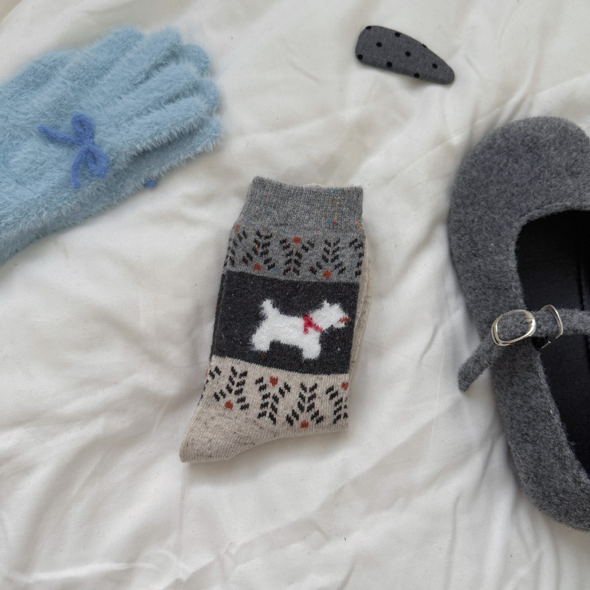작은 빨간 책 폭발 조합! Bowknot 컬러 모헤어 쥬얼리 양말 두껍게 기모 양모 양말 따뜻한 더미스토어 가기