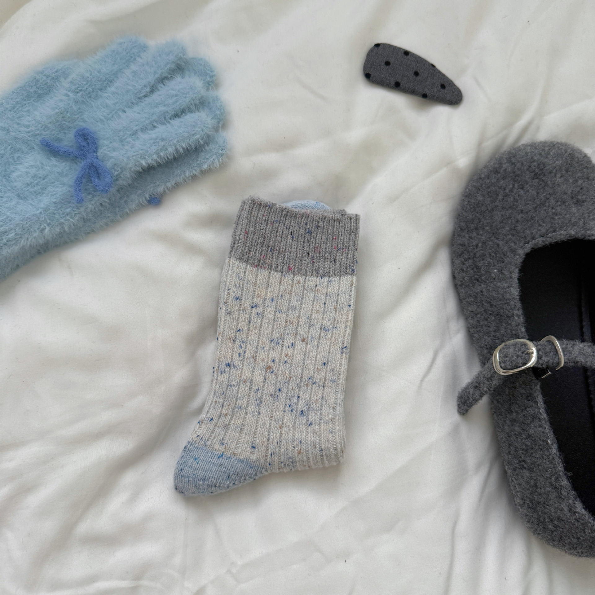 작은 빨간 책 폭발 조합! Bowknot 컬러 모헤어 쥬얼리 양말 두껍게 기모 양모 양말 따뜻한 더미