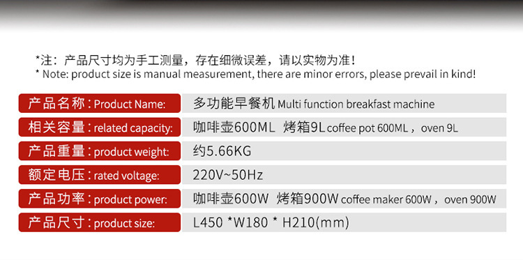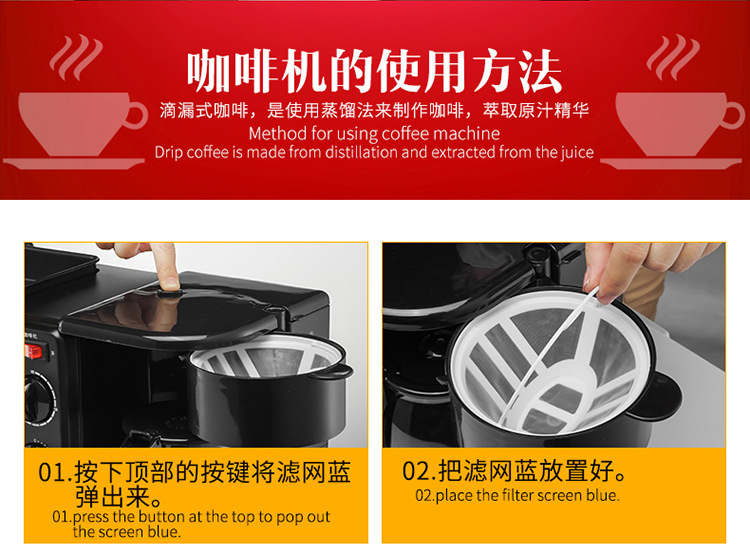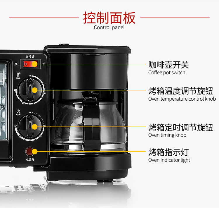 국경 3 대 1 다기능 아침 식사 기계 계란 타르트 베이킹 토스터 빵 기계 미니 전기 오븐 커피 머신스토어 가기