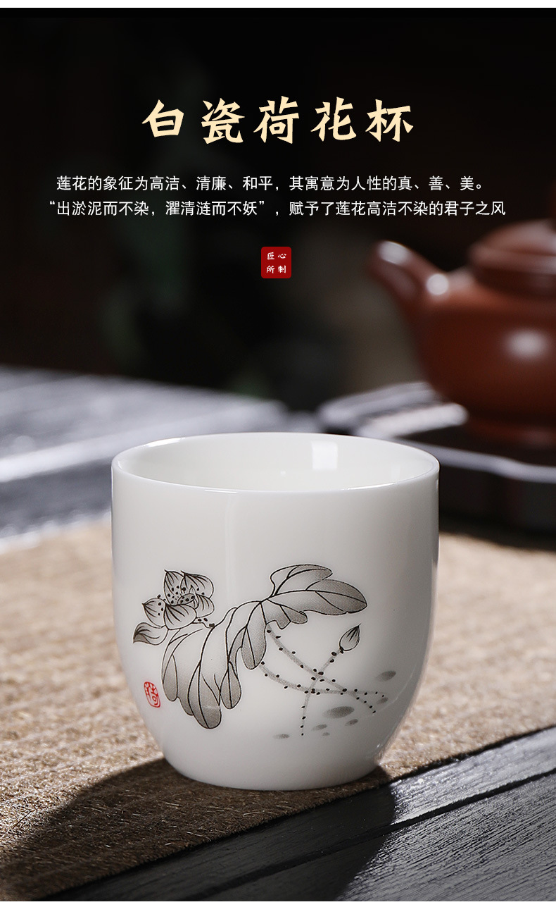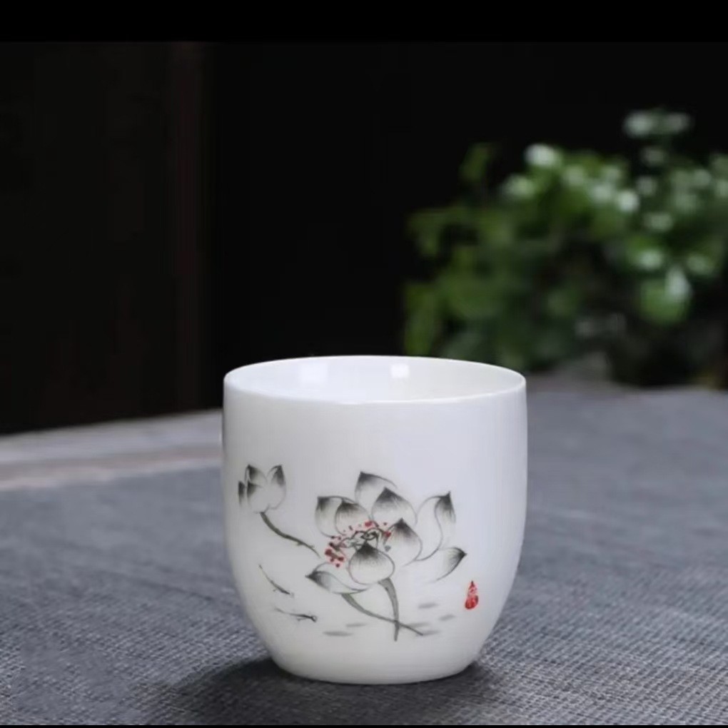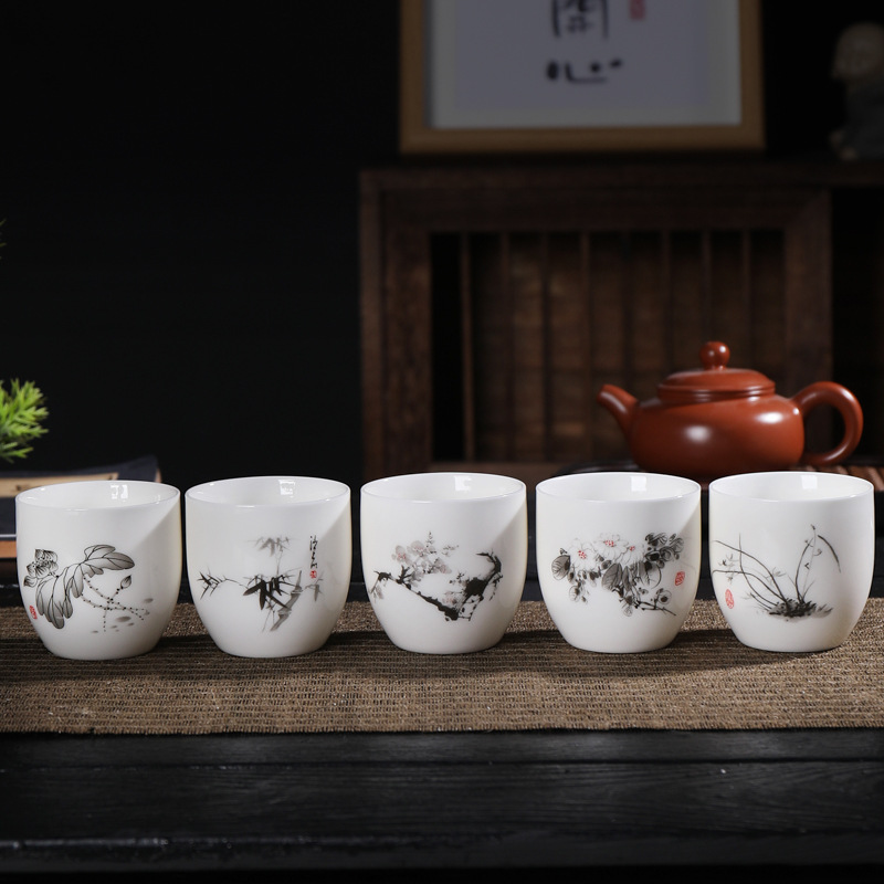 양 뚱뚱한 옥 고전적인 매화, 난초, 대나무 및 국화 차 컵 마스터 컵 Dehua 흰색 도자기 차 컵 사무실 집 큰 차 컵