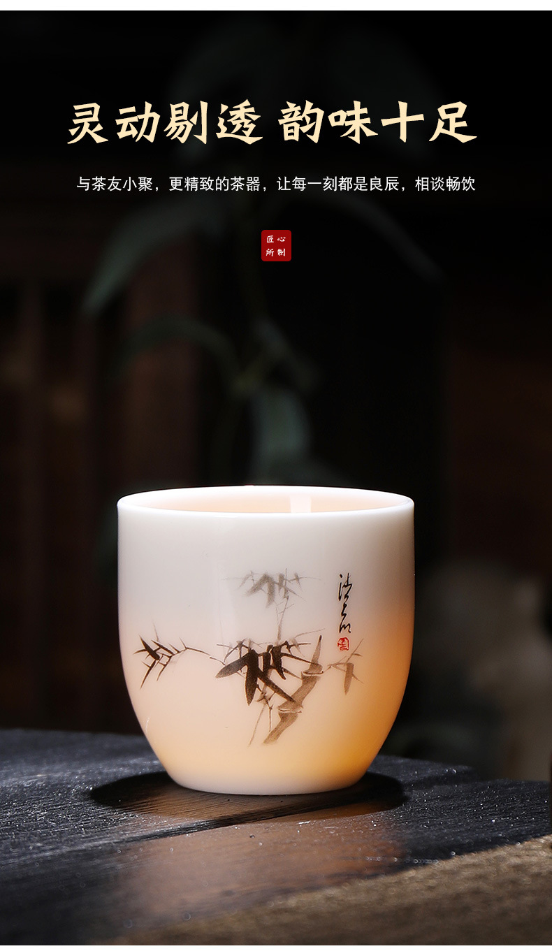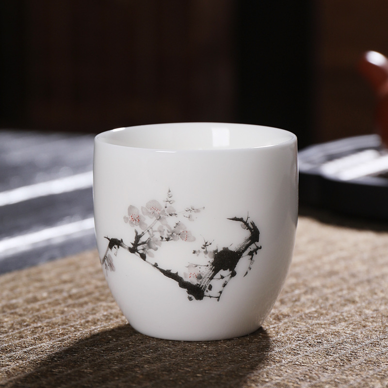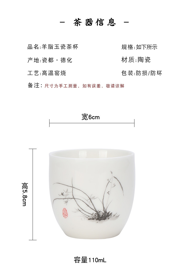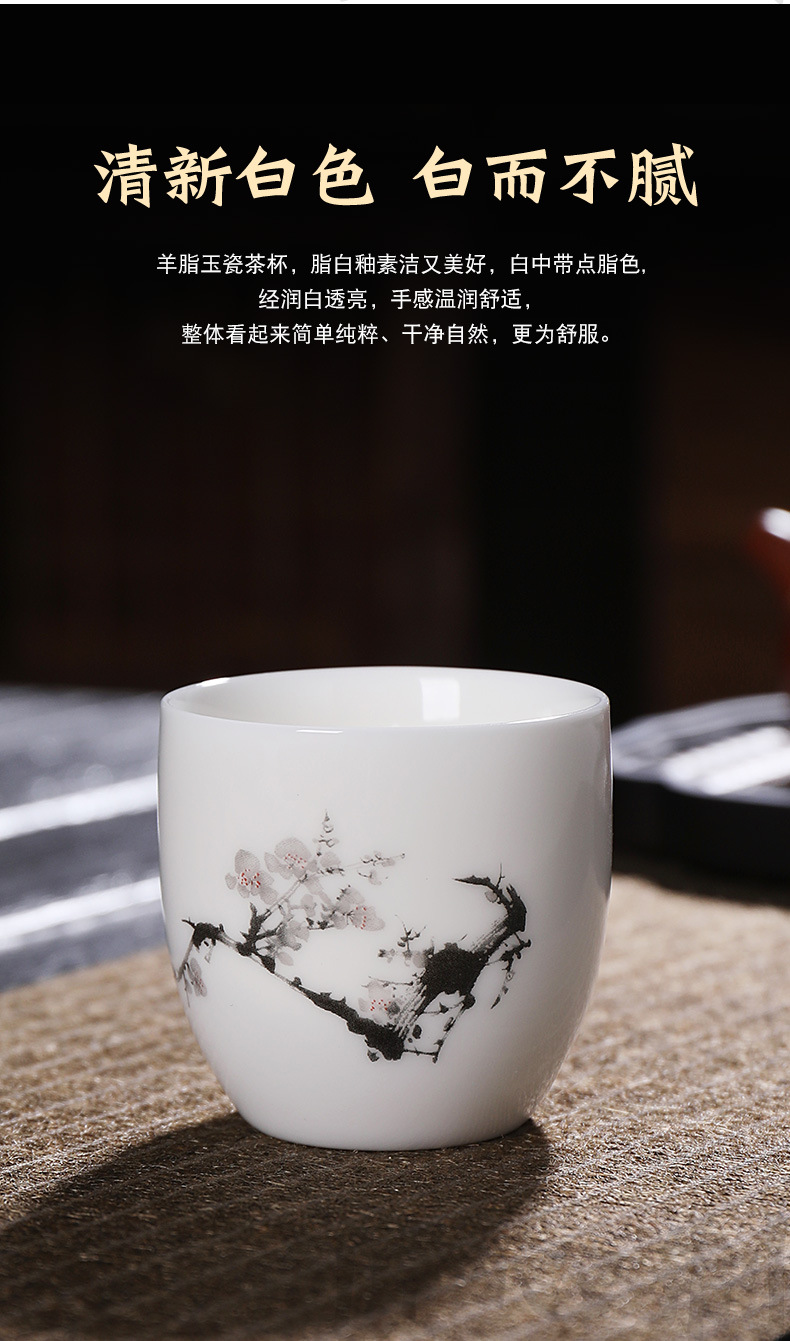 양 뚱뚱한 옥 고전적인 매화, 난초, 대나무 및 국화 차 컵 마스터 컵 Dehua 흰색 도자기 차 컵 사무실 집 큰 차 컵스토어 가기