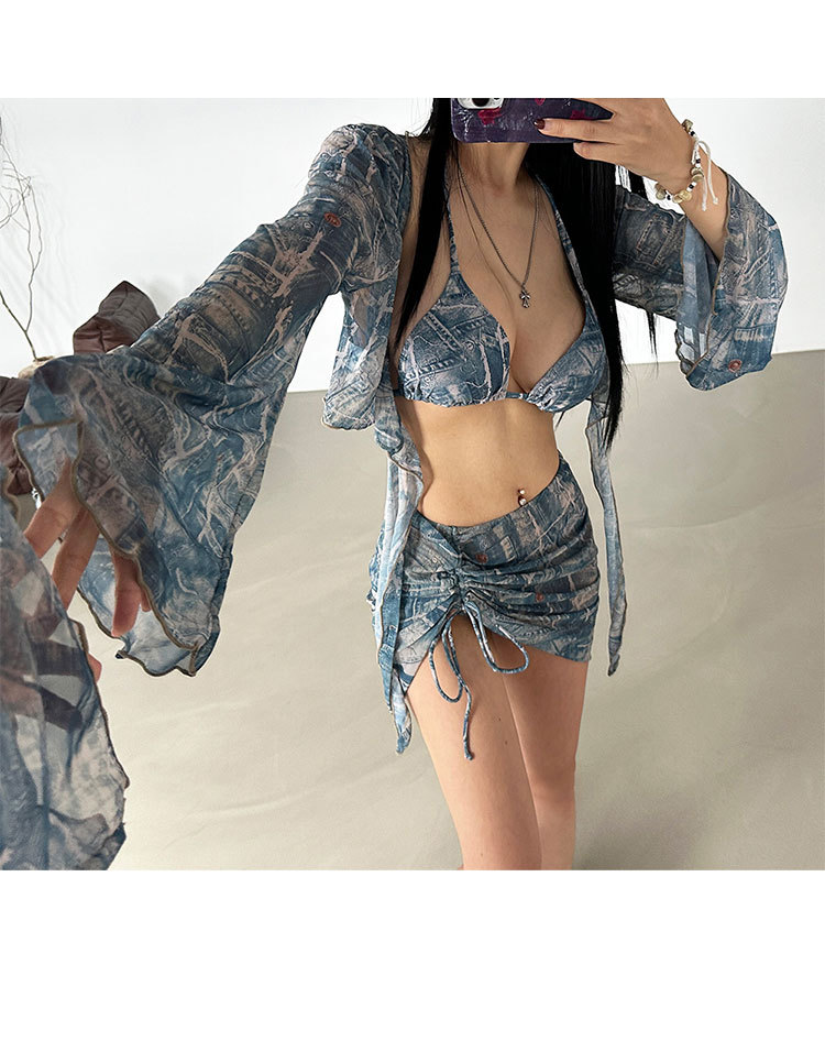 수영복 여성용 스플릿 비키니 4 피스 롱 슬리브 블라우스 섹시한 순수한 욕망 소녀의 2024 새로운 온천 수영복