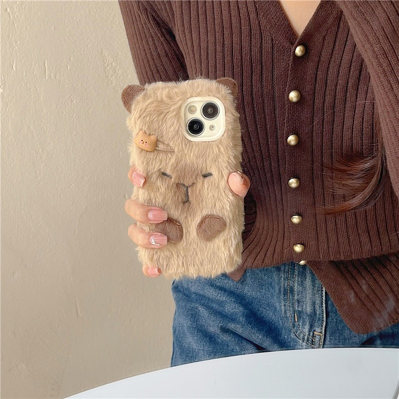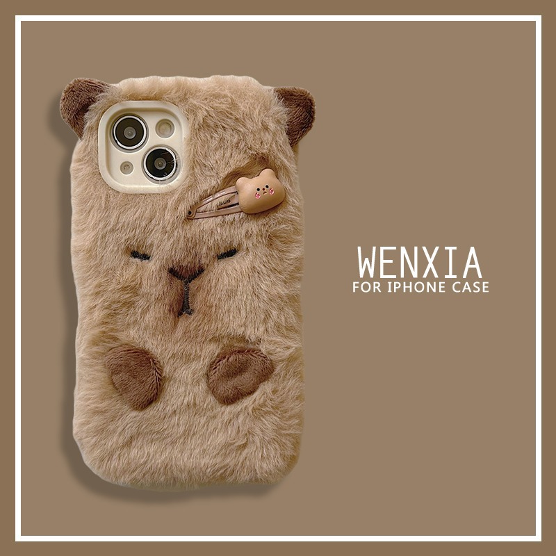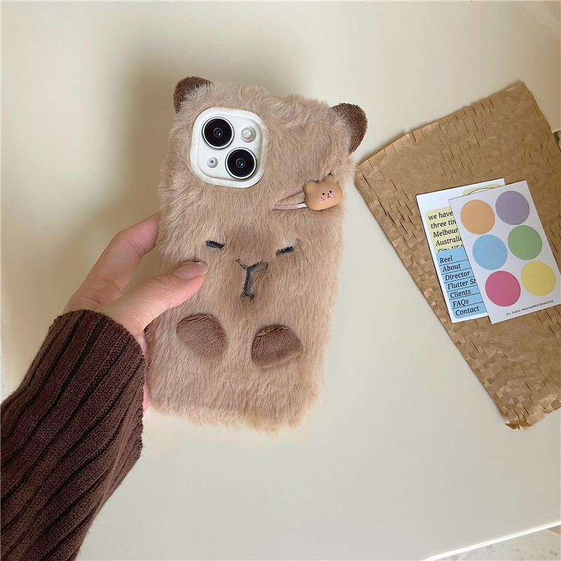 애플 17프로맥스 플러시 가을 겨울 휴대폰 케이스 아이폰15 카피발라 수달 머리핀 보호 케이스스토어 가기