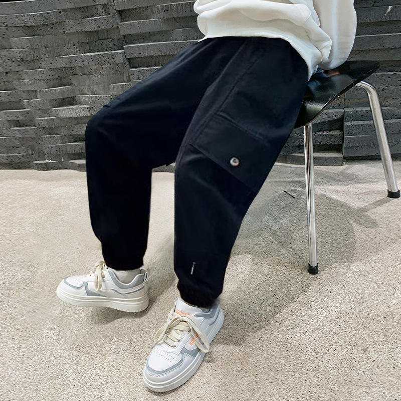 어린이 착용 소년 바지 가을/겨울 2024 새로운 어린이 따뜻한 스포츠 발 기모 두꺼운 바지 잘 생긴 캐주얼 바지