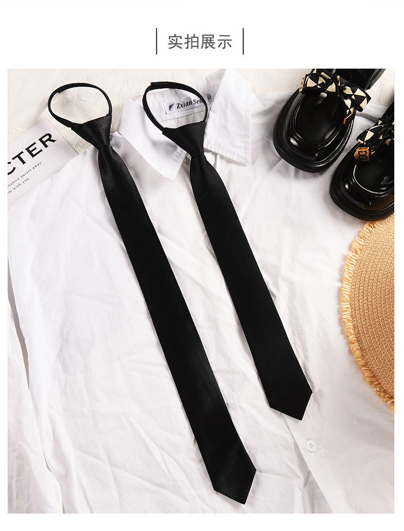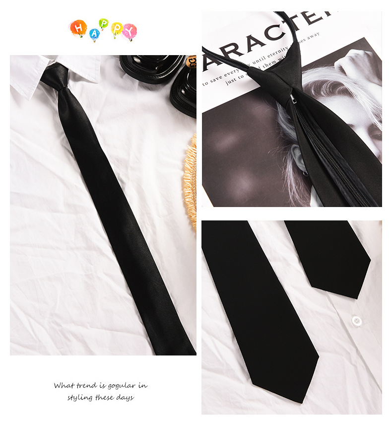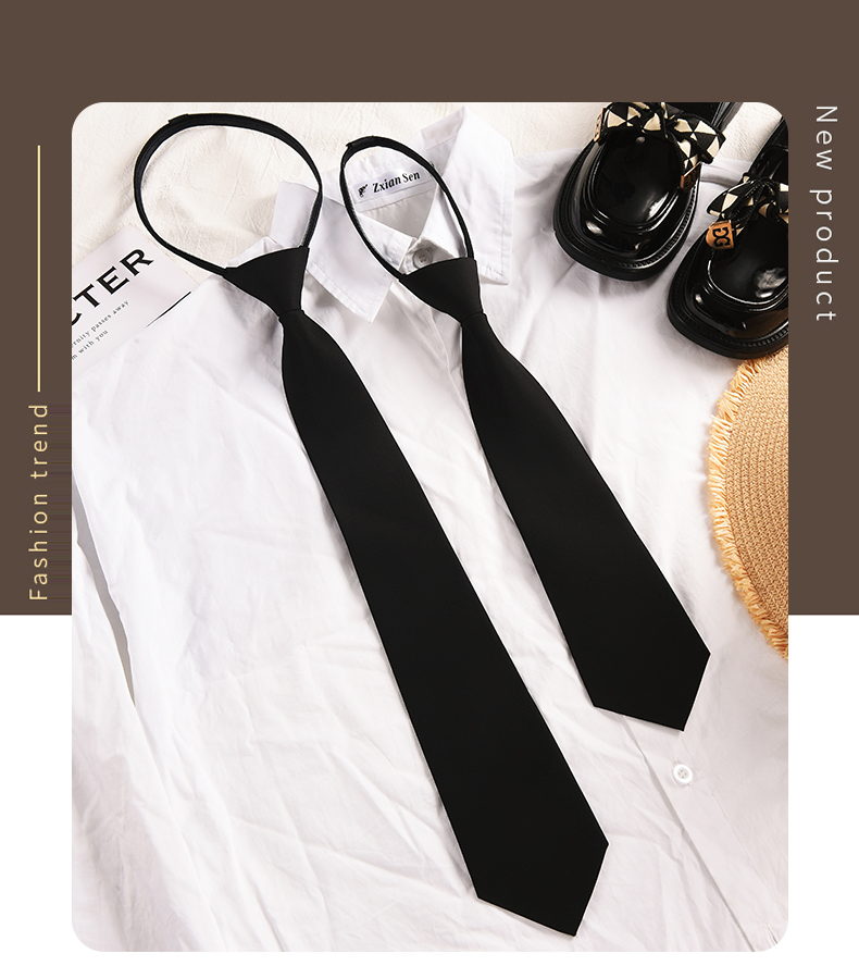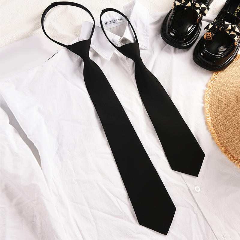 Jk 블랙 타이 여성 학생 활 넥타이 대학 스타일 셔츠 남성 지퍼 무료 스타일 여성 장식 감각