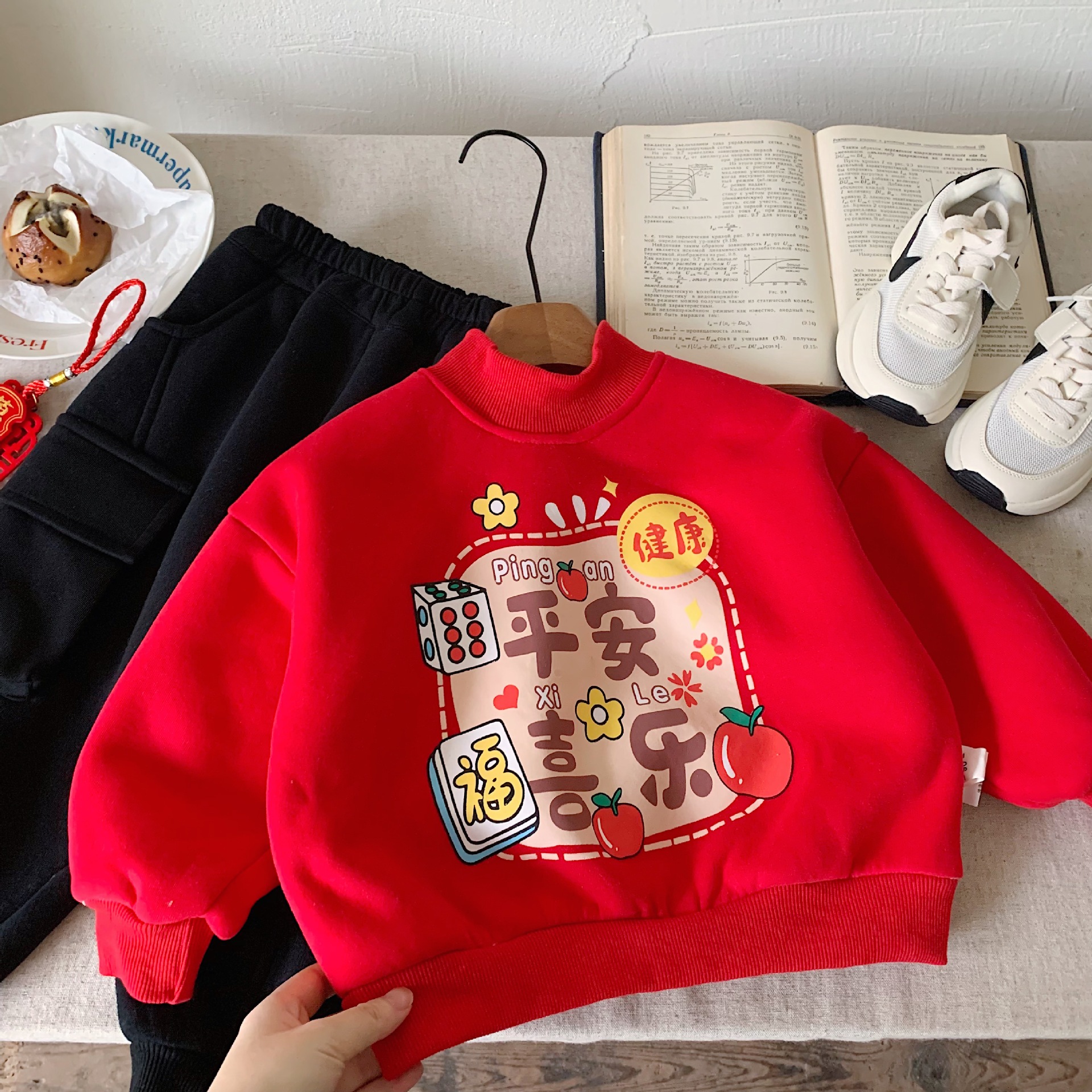 어린이 스웨터 방청 2024 겨울 신년 서비스 레드 핑 기쁨 기모 풀오버 타이드 F0592스토어 가기