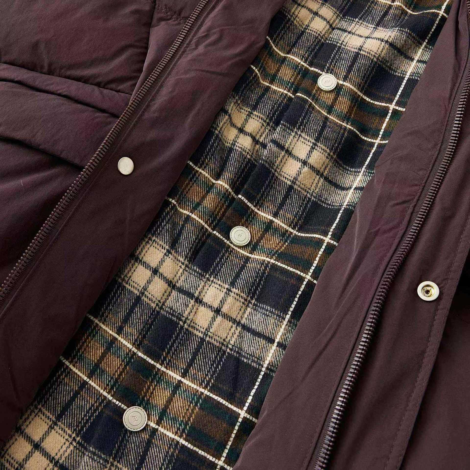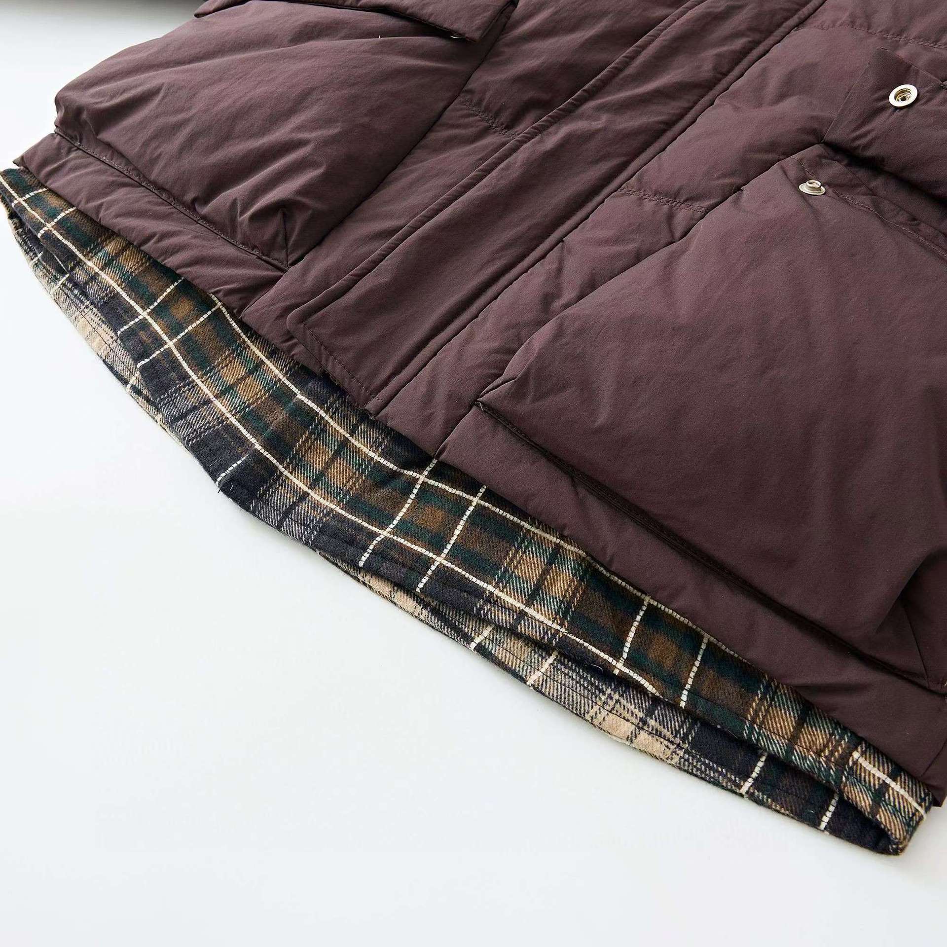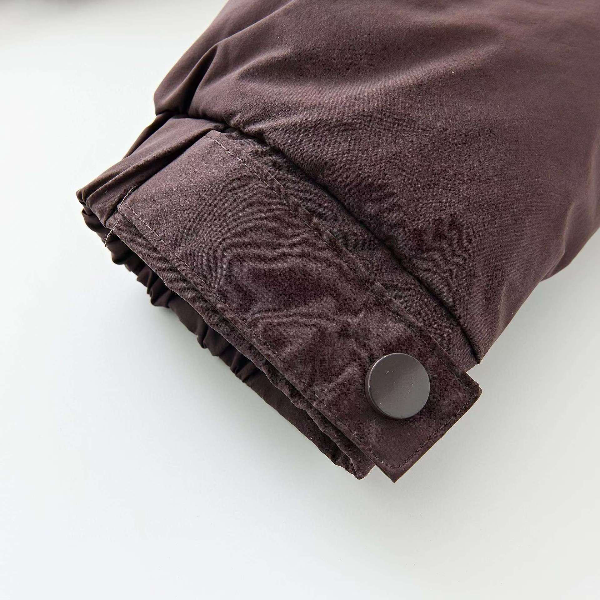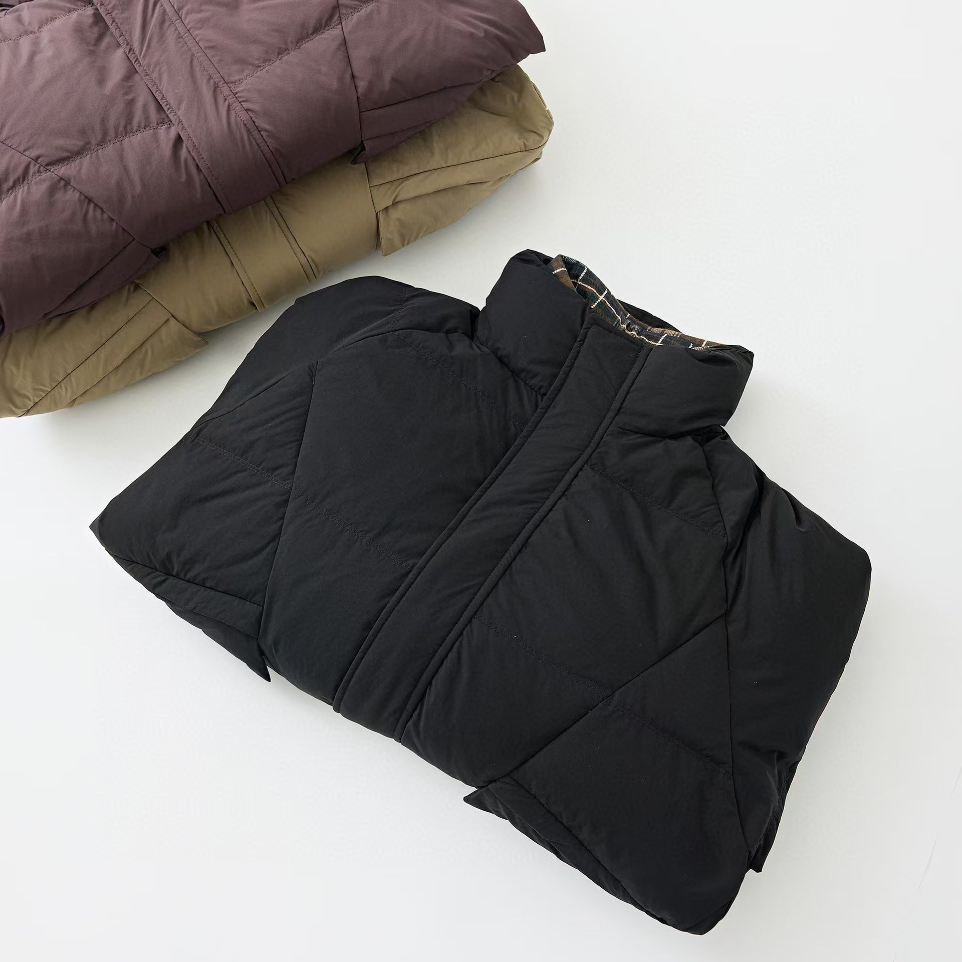 内里白鸭绒填充,篙蓬松度,上身防峰保暖,立领设计,领口和袖口按扣调节,