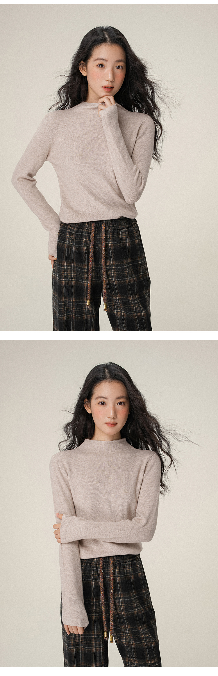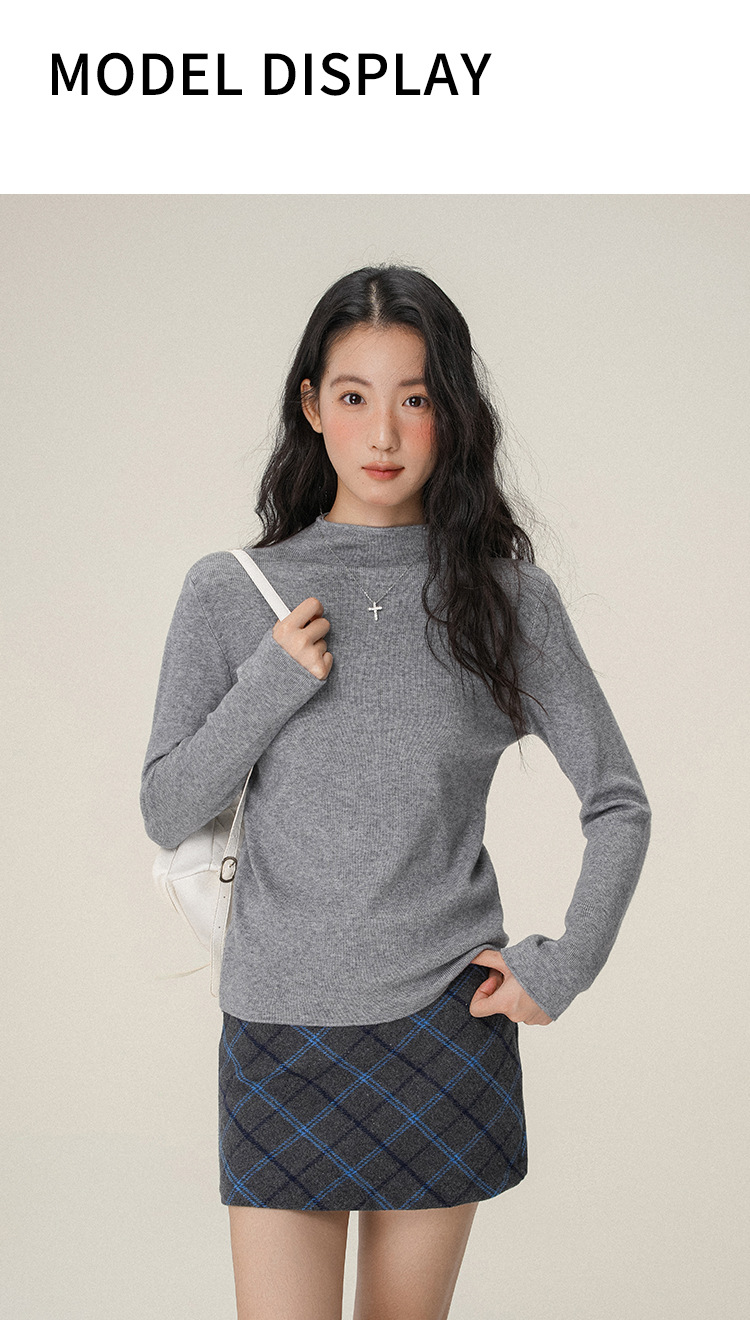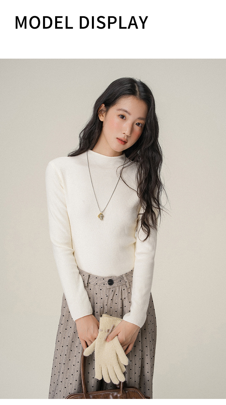 Ji You 스탠드 칼라 하이 엔드 니트 바닥 셔츠와 하프 터틀넥 스웨터 여성 가을, 겨울 새로운 소프트 왁스 탑스토어 가기