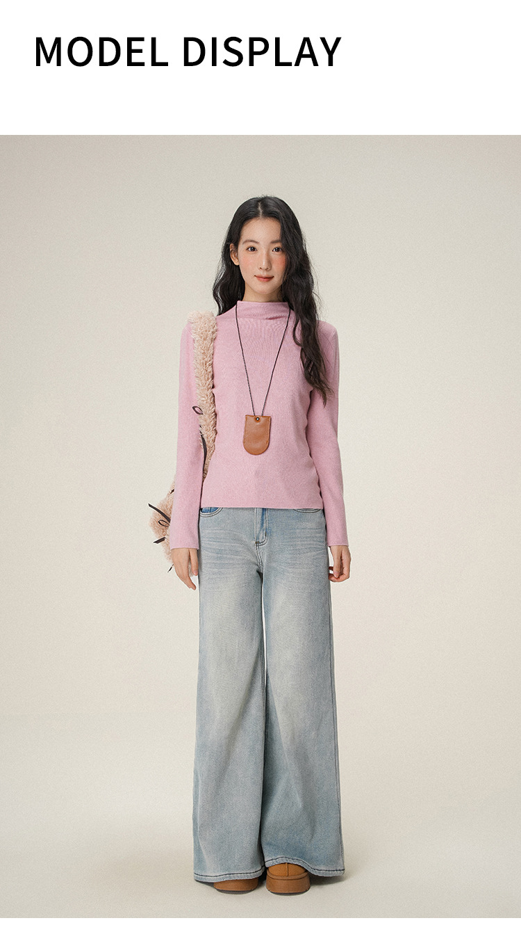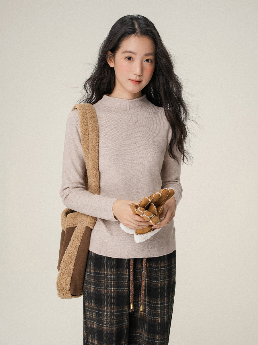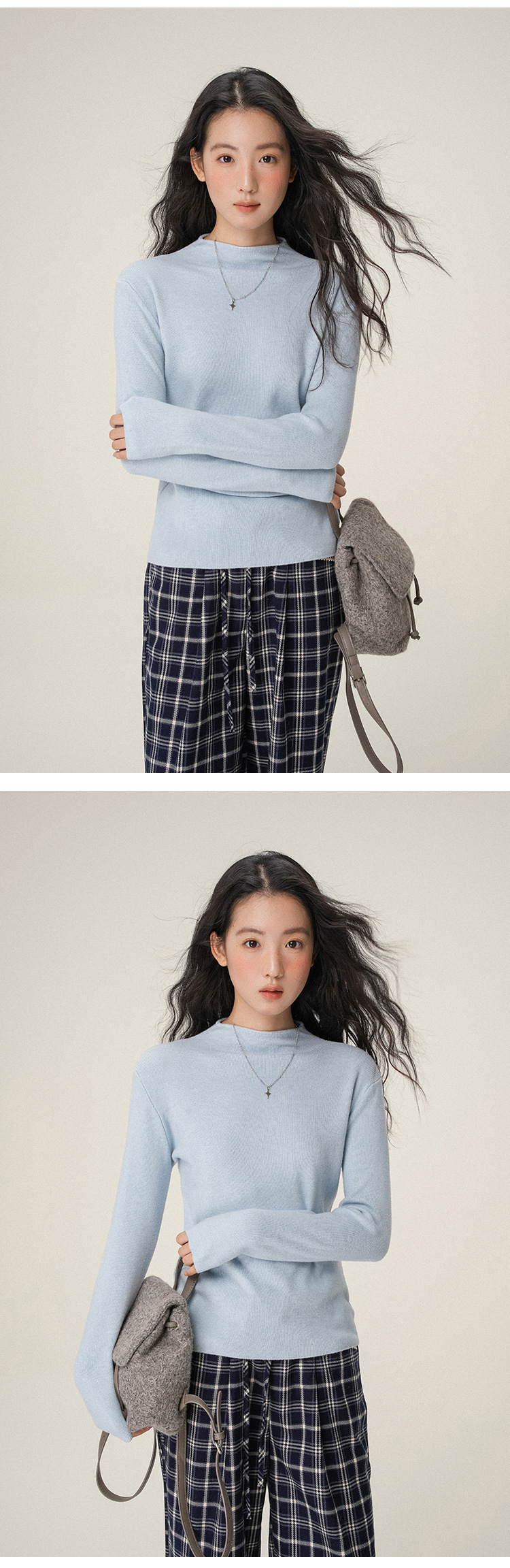 Ji You 스탠드 칼라 하이 엔드 니트 바닥 셔츠와 하프 터틀넥 스웨터 여성 가을, 겨울 새로운 소프트 왁스 탑스토어 가기