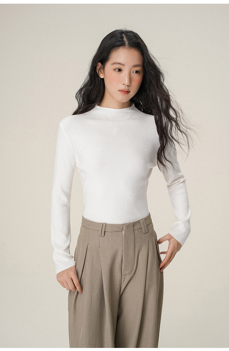 Ji You 스탠드 칼라 하이 엔드 니트 바닥 셔츠와 하프 터틀넥 스웨터 여성 가을, 겨울 새로운 소프트 왁스 탑