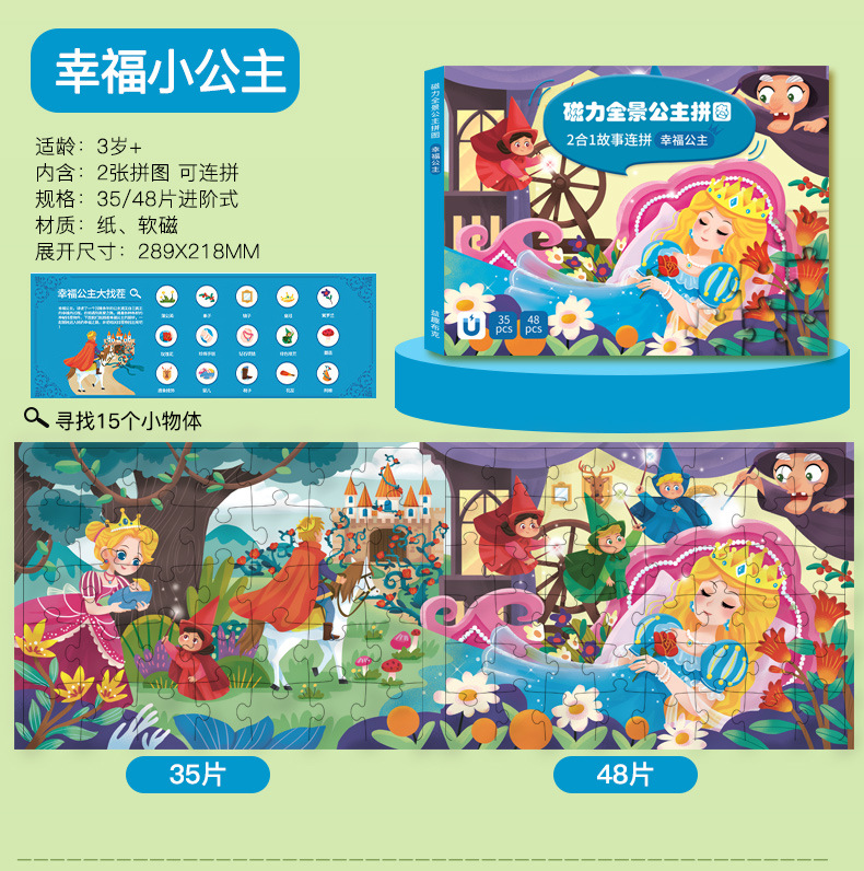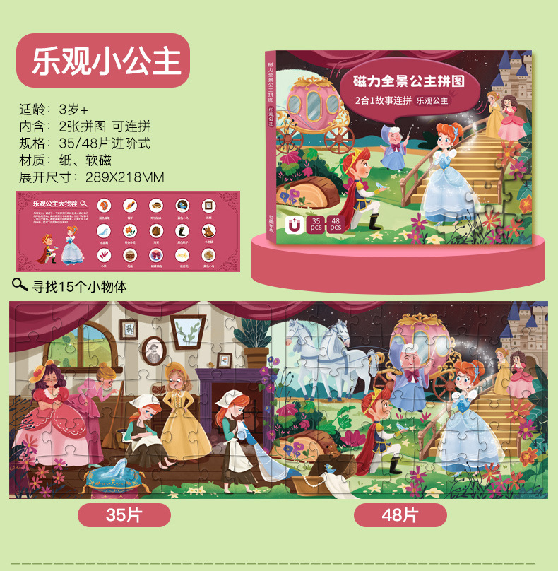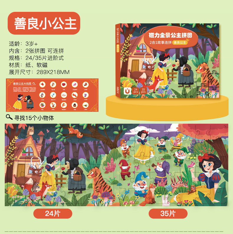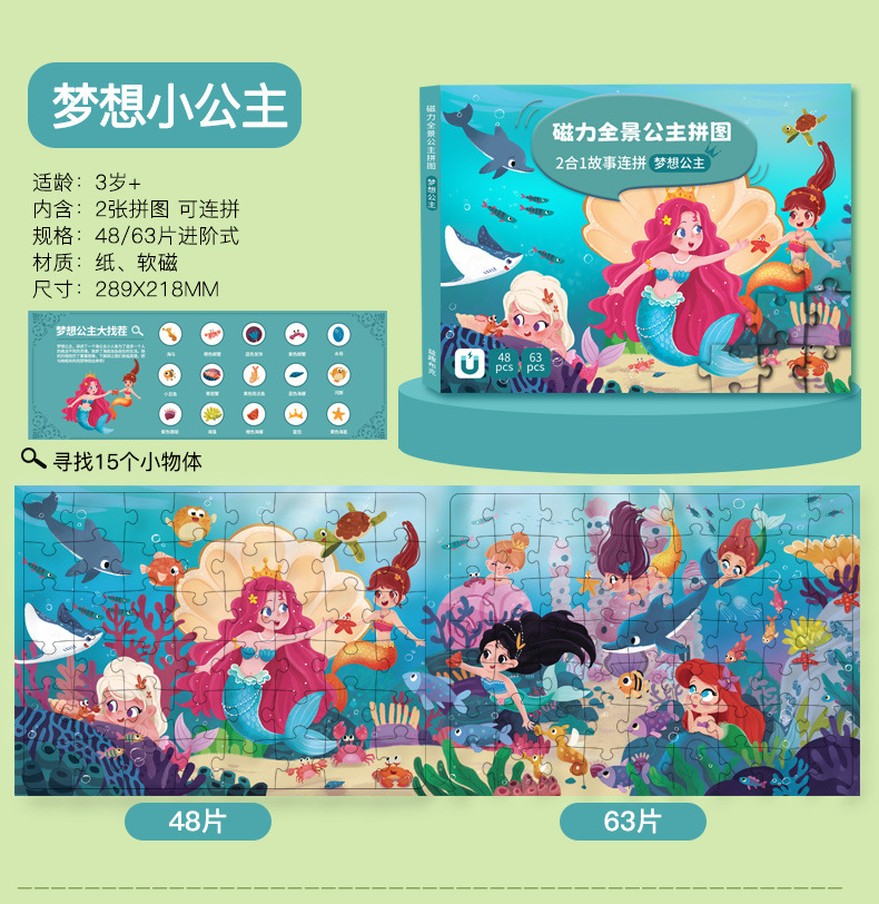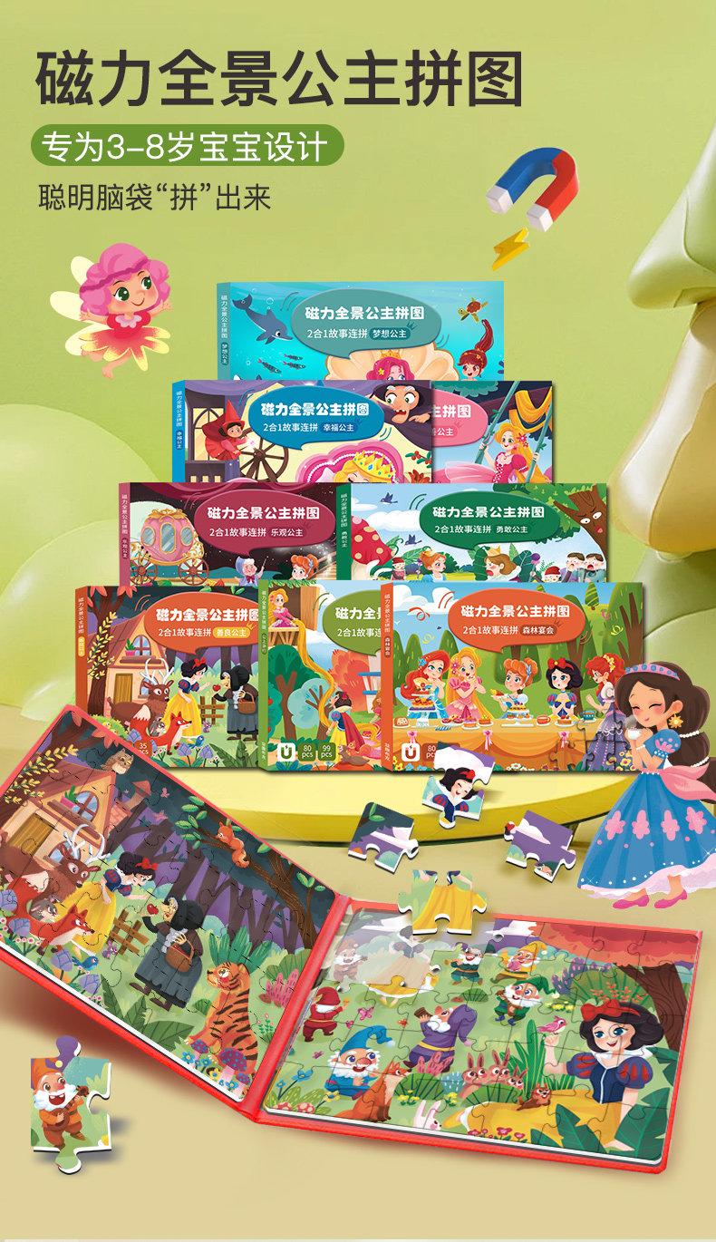 어린이 자기 퍼즐 3 ~ 6 세 소녀 아이 고급 평면 그림 자기 스티커 공주 교육 장난감 선물스토어 가기