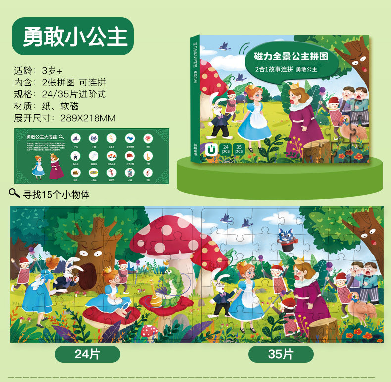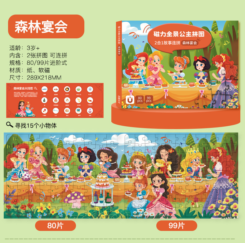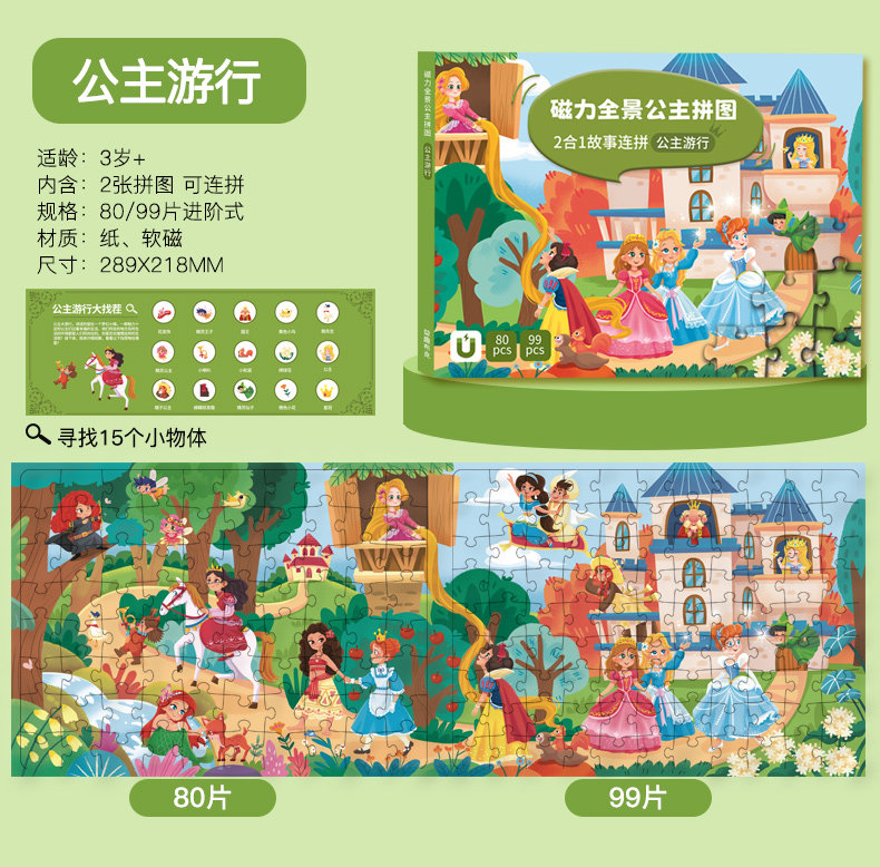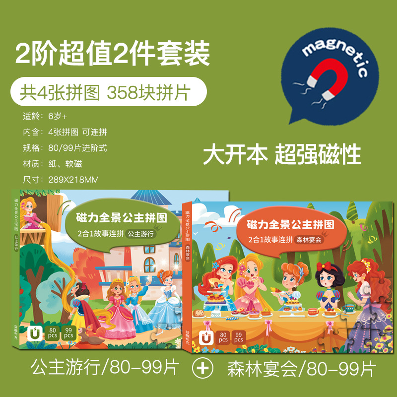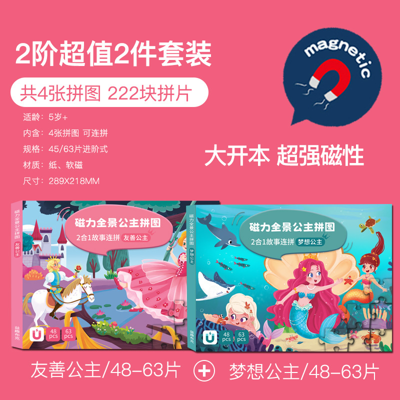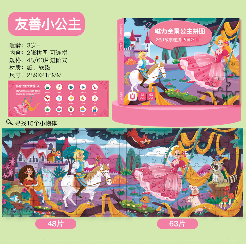 어린이 자기 퍼즐 3 ~ 6 세 소녀 아이 고급 평면 그림 자기 스티커 공주 교육 장난감 선물스토어 가기