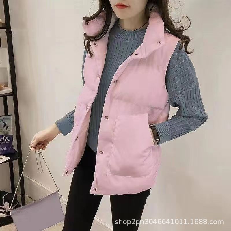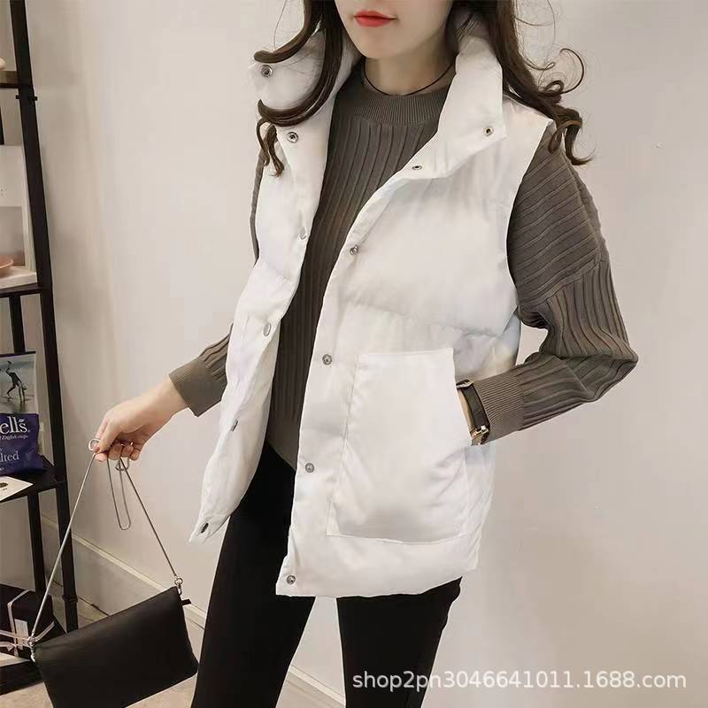 2024 가을 겨울 여성용 슬림핏 숏 코튼 조끼 민소매 조끼 학생용 코트 패딩 숏 슬림핏