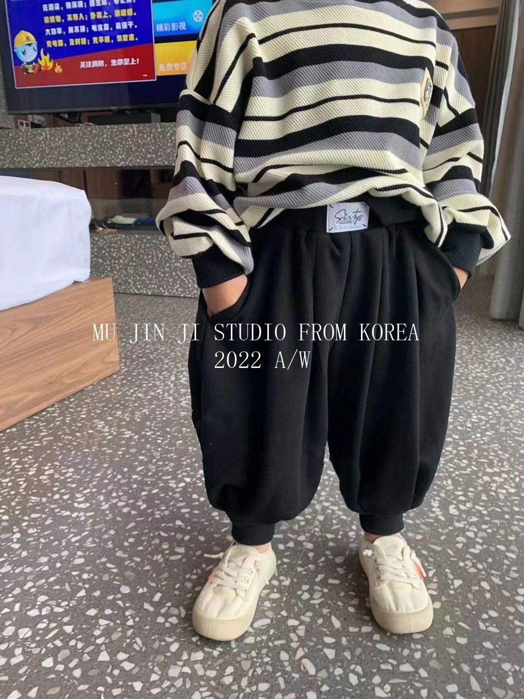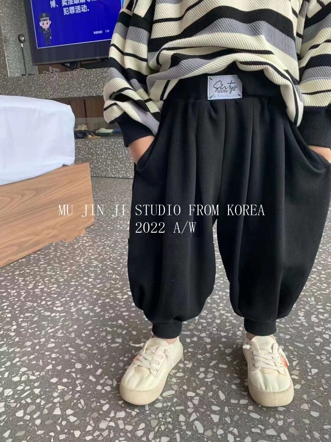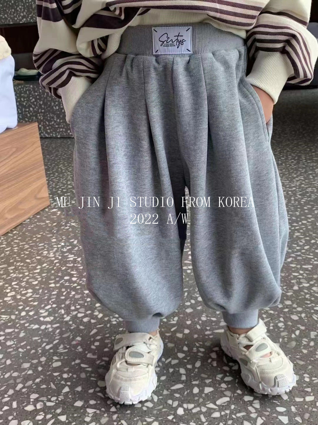 소년 소녀 가을 운동복 2024 새로운 온라인 인기있는 외국식 느슨한 솔리드 컬러 다리 캐주얼 스웨트 팬츠 어린이 스포츠 바지스토어 가기
