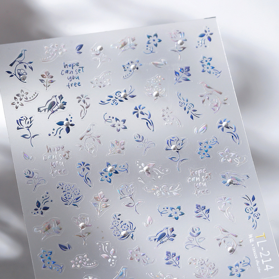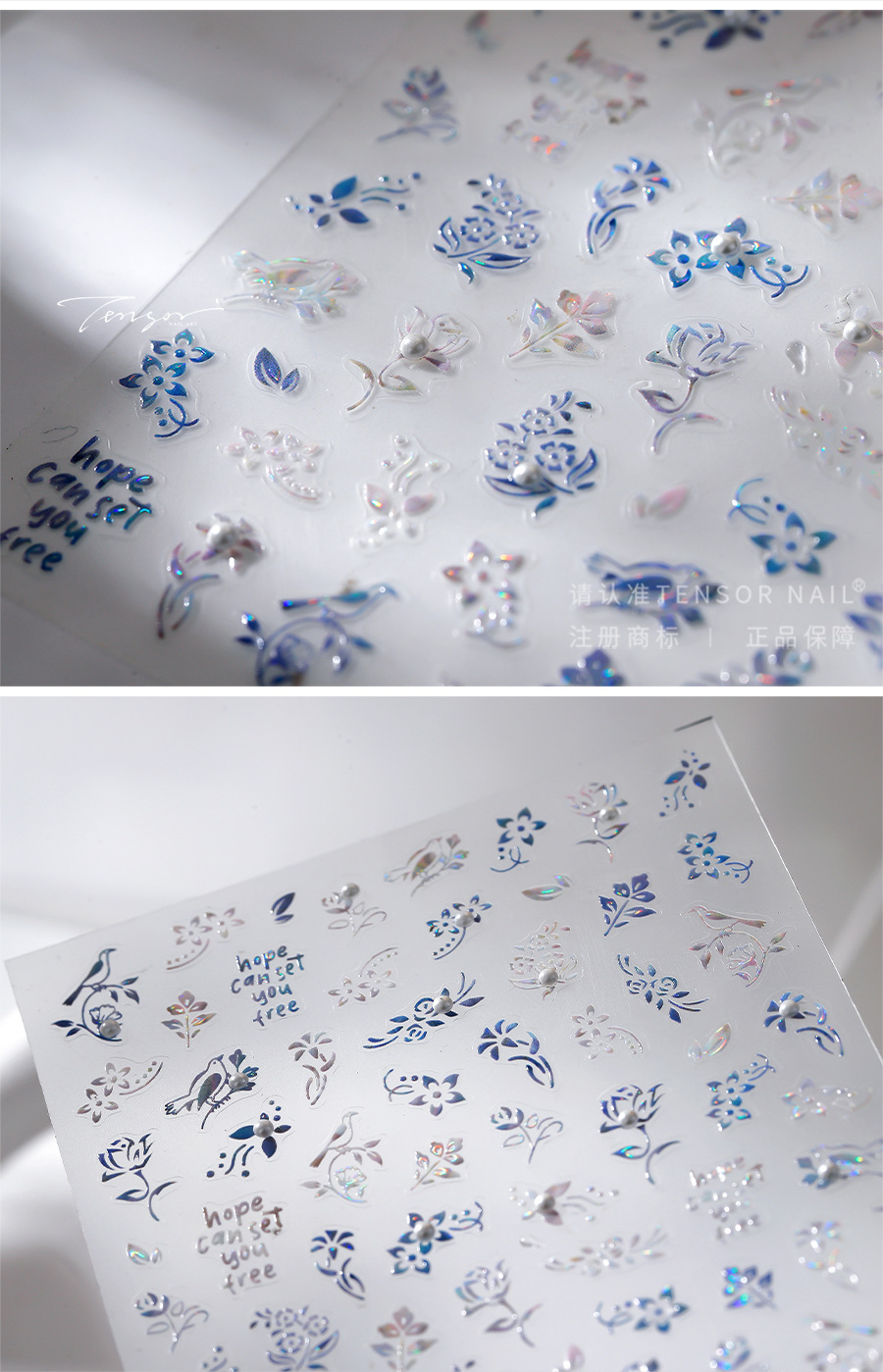 TENSOR 새로운 프로세스 Ins 골동품 블루 패턴 네일 아트 스티커 접착 네일 아트 스티커 길딩 시리즈 TL-214스토어 가기