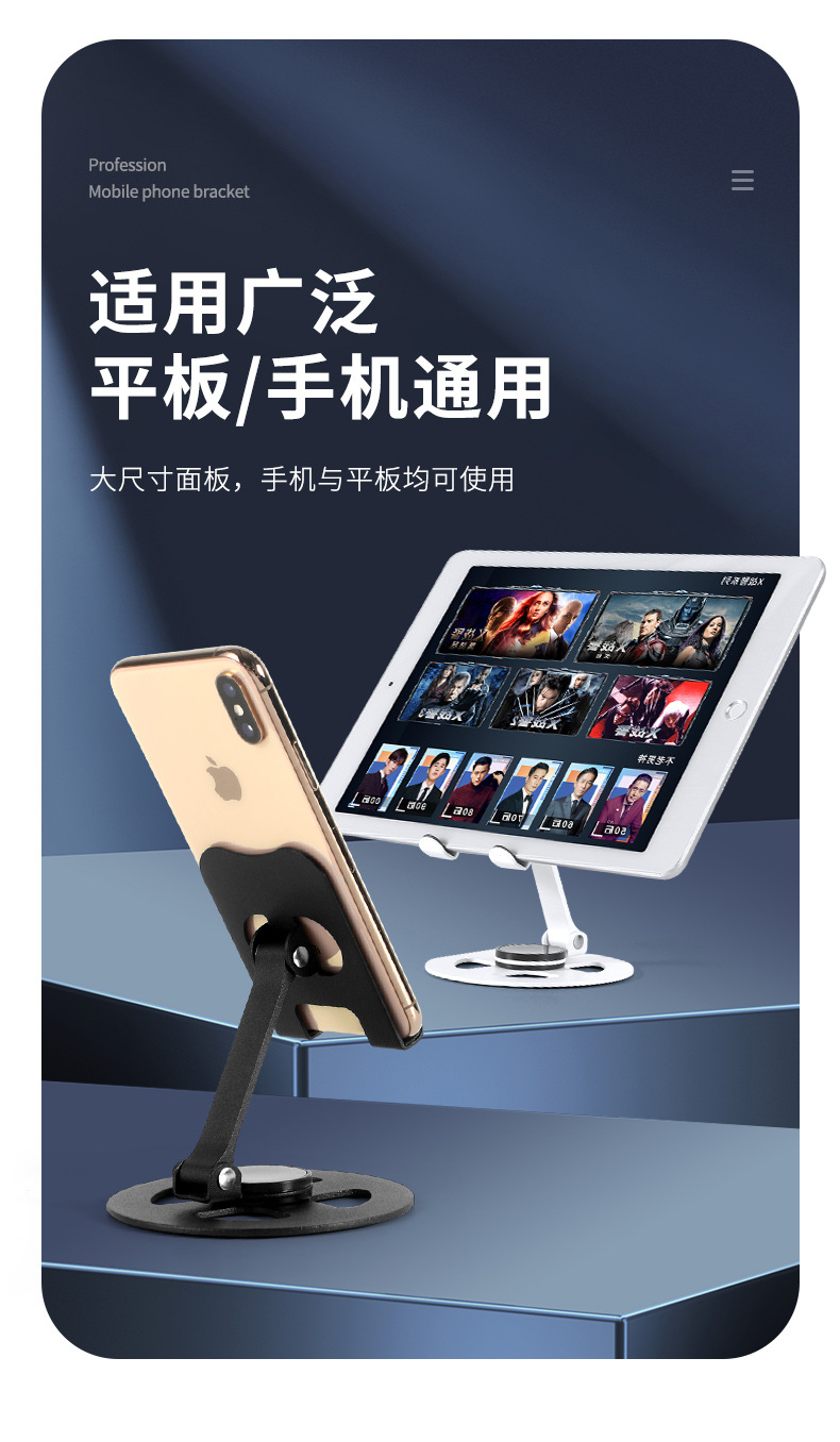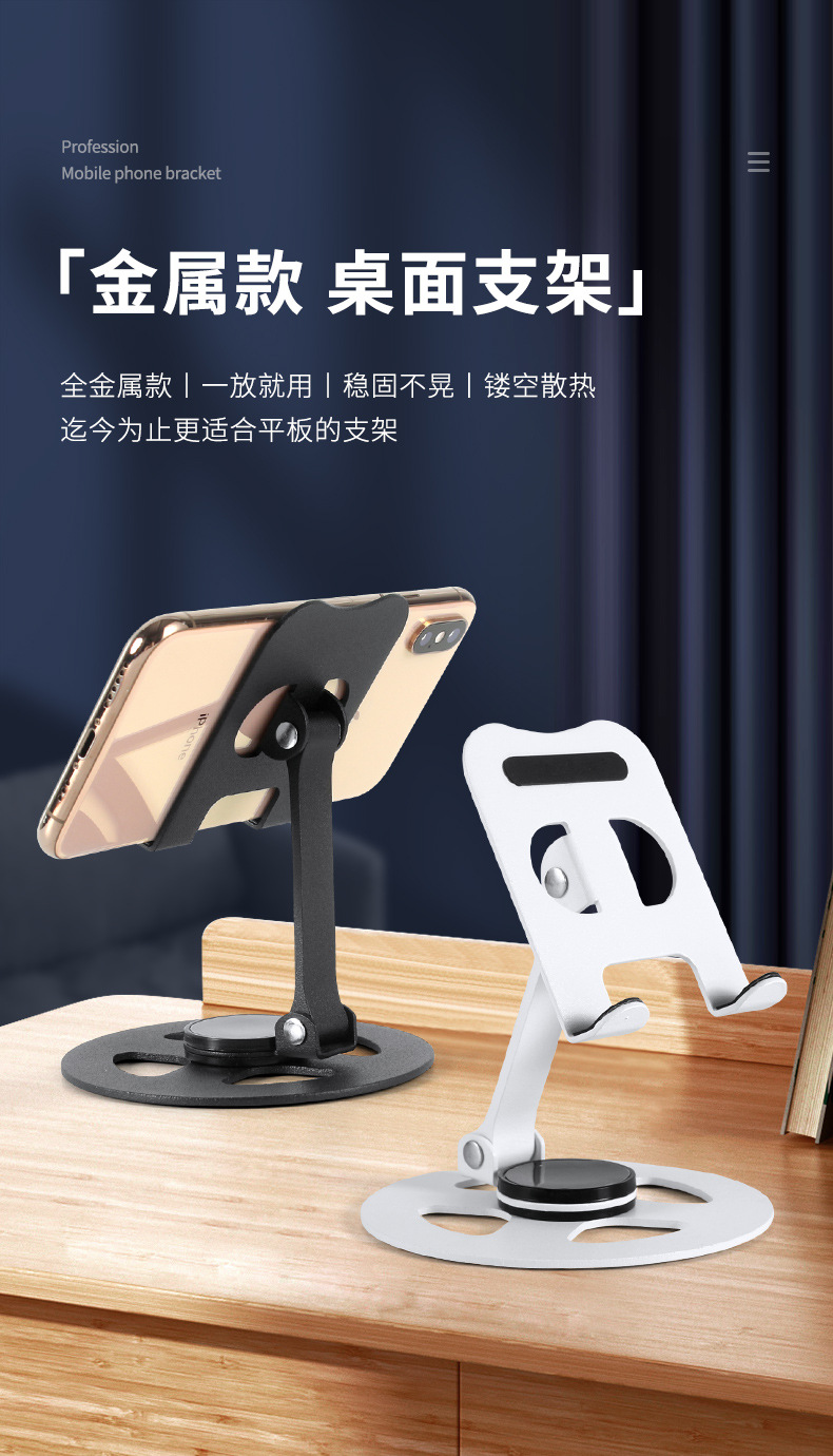 모든 금속 회전 휴대 전화 스탠드 접이식 휴대용 게으른 스탠드 데스크톱 라이브 휴대 전화 태블릿 유니버설 스탠드
