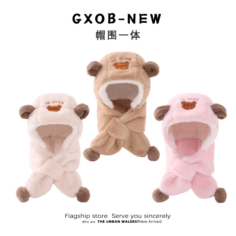 어린이 모자 가을과 겨울 야외 자전거 방풍 귀 보호 모자 아기 스카프 통합 모자 스카프스토어 가기