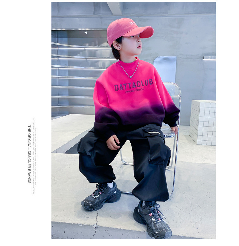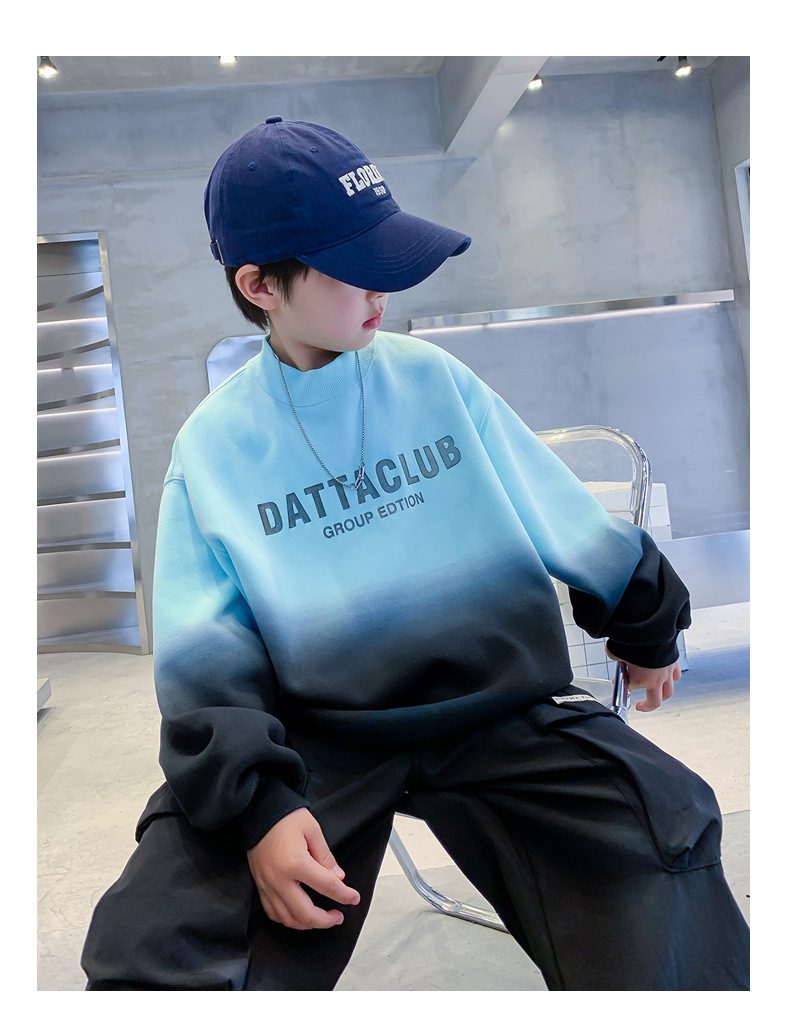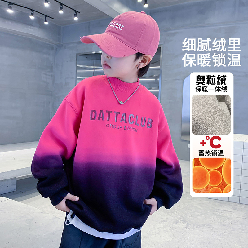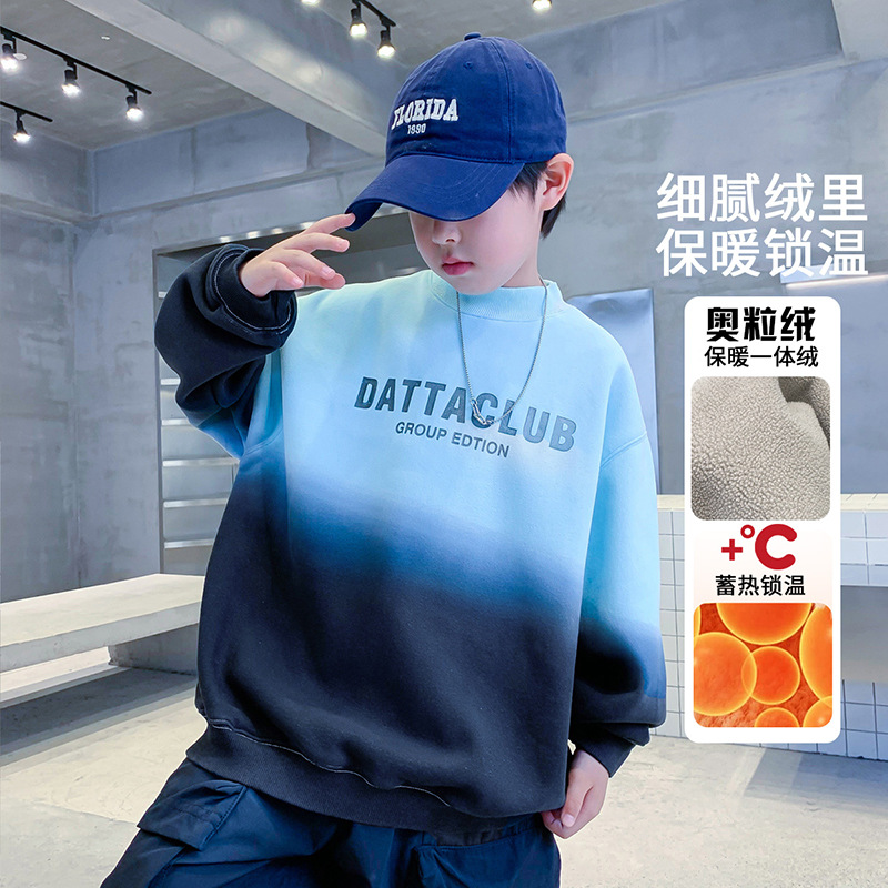 소년 기모 땀 가을 겨울 2024 새로운 두꺼운 겨울 소년 원피스 벨벳 어린이 잘 생긴 그라디언트 탑스토어 가기