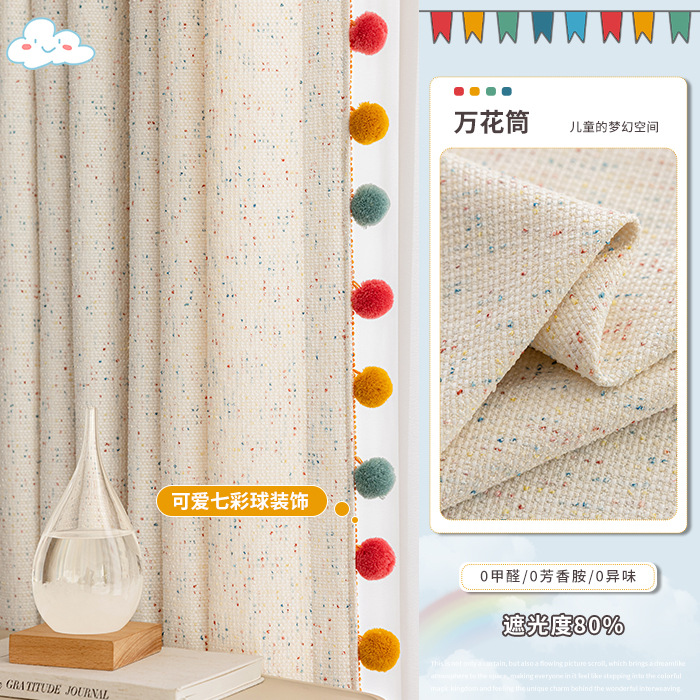라이트 럭셔리 Doudou 셔닐 복고풍 하이 엔드 자카드 커튼 어린이 방 침실 거실 크림 스타일 빛 차단 커튼