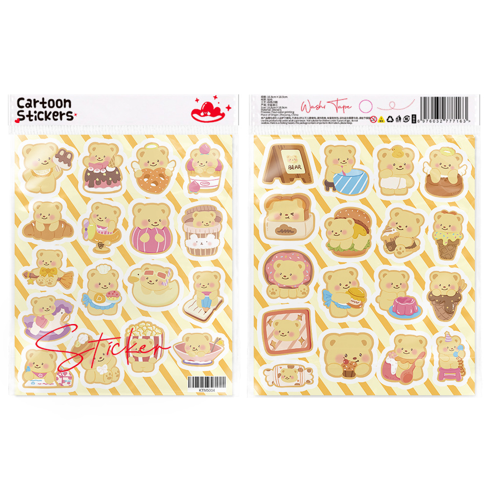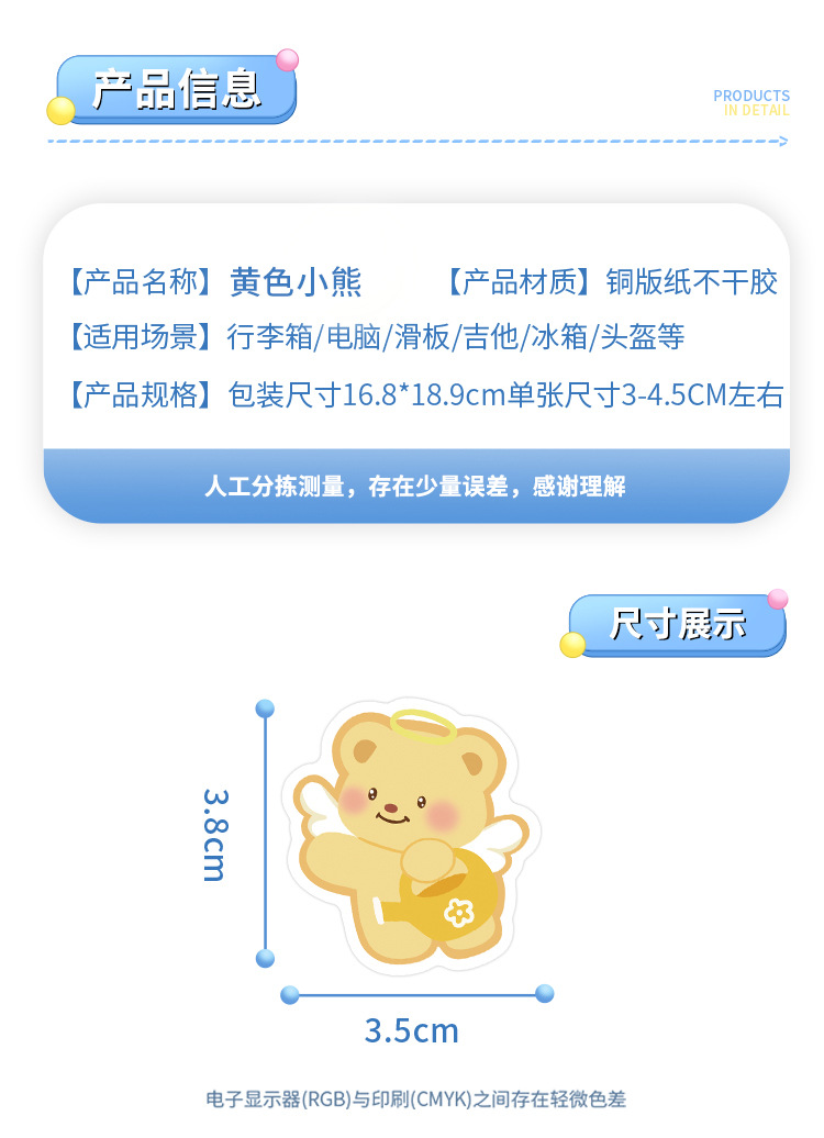 100 귀여운 만화 버터 곰 스티커 노트북 전화 케이스 다크 브라운 수지 패치 장식 스티커 도매