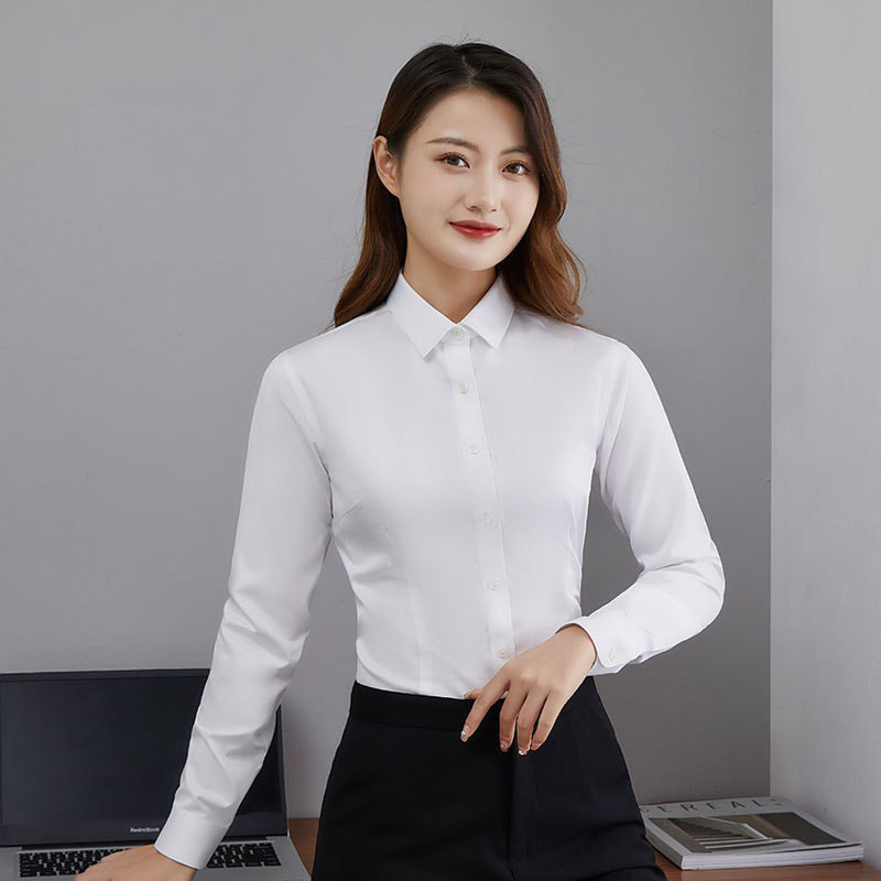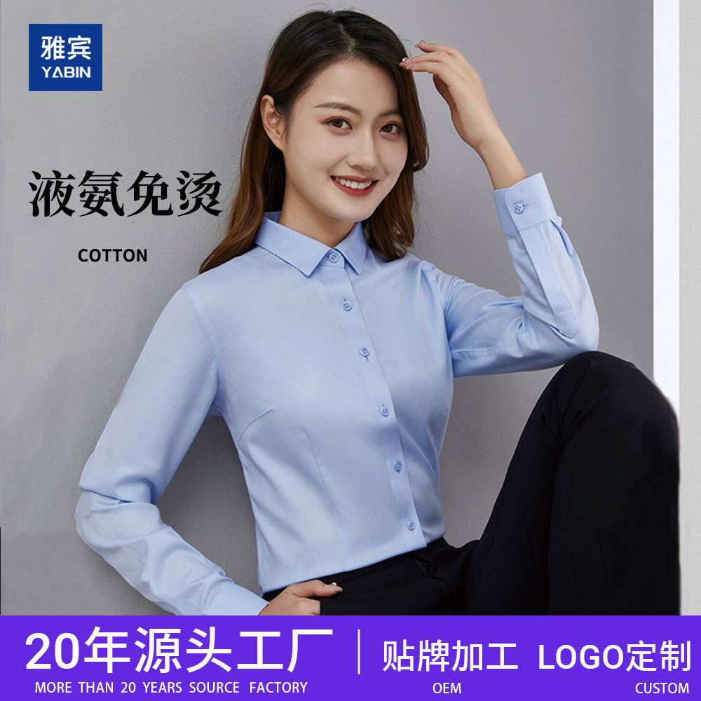 봄과 가을 하이 엔드 전문 여성 긴팔 셔츠 여성 하이 엔드 비즈니스 원피스 액체 암모니아 비 다림질 주름 슬림 핏 셔츠스토어 가기