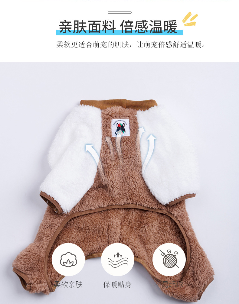 애완 동물 가을과 겨울 Fadou Bago Chai 개 끈 강아지 양면 양털 기모 두꺼운 네 다리 옷