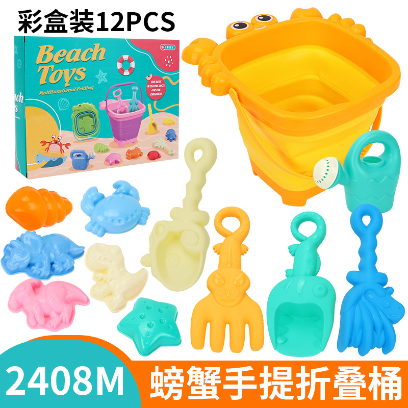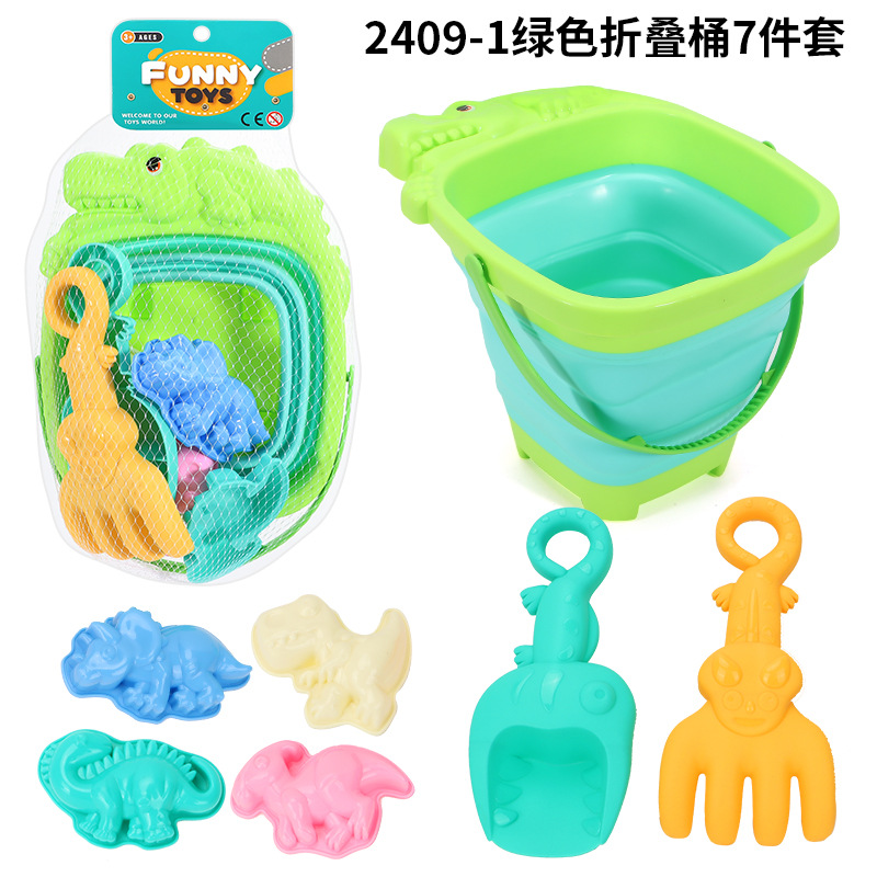 2408M黄绿折叠桶12件套沙滩实拍