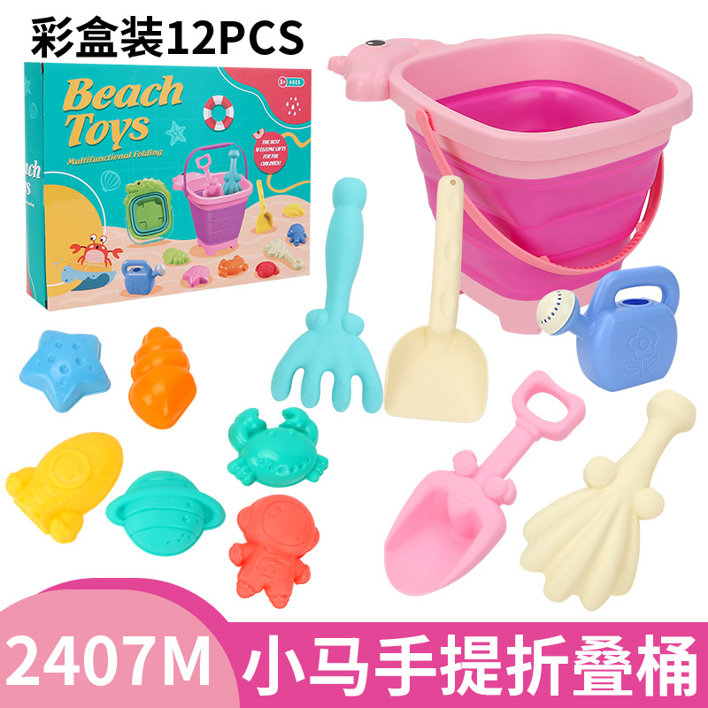 2407M粉色折叠桶12件套沙滩重量