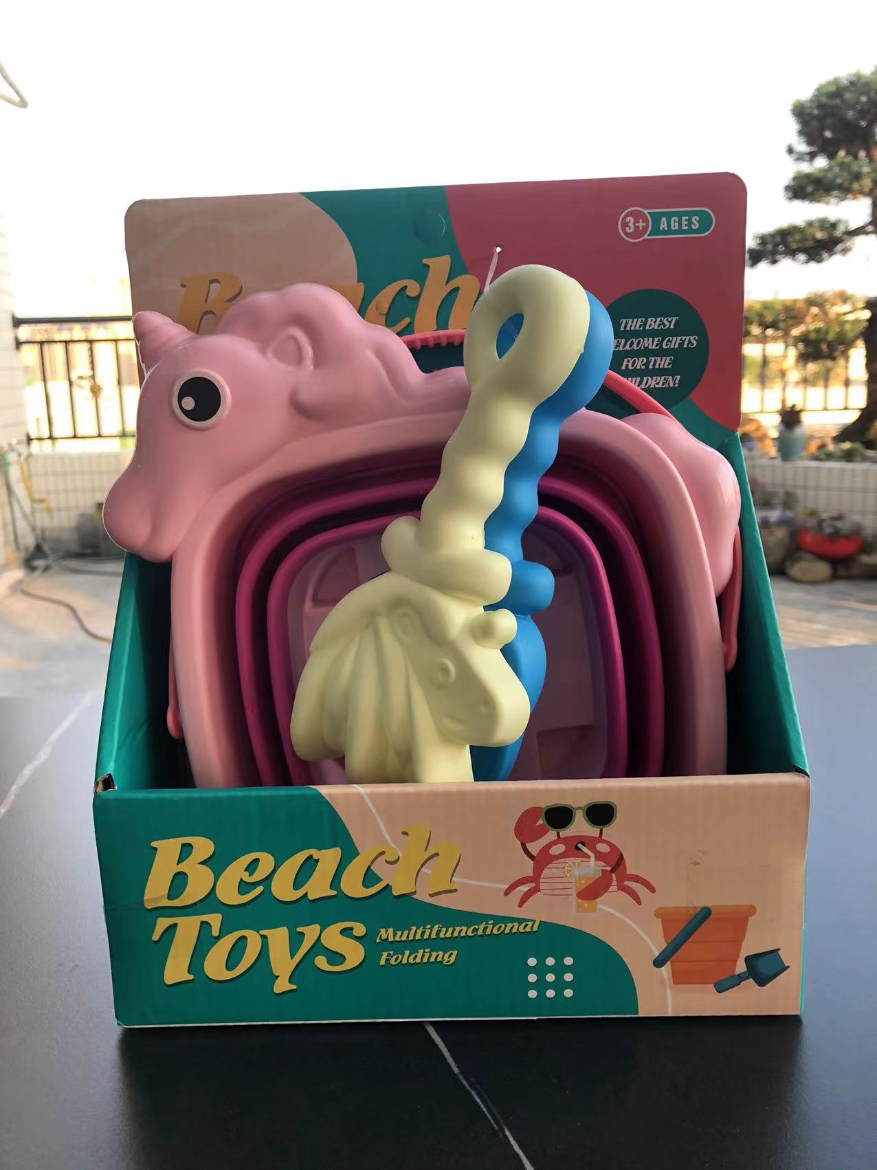 2406M粉黄折叠桶10件套沙滩实拍