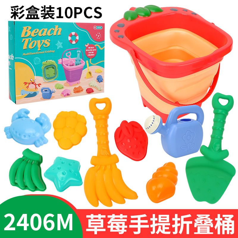 2406M粉黄折叠桶10件套沙滩重量